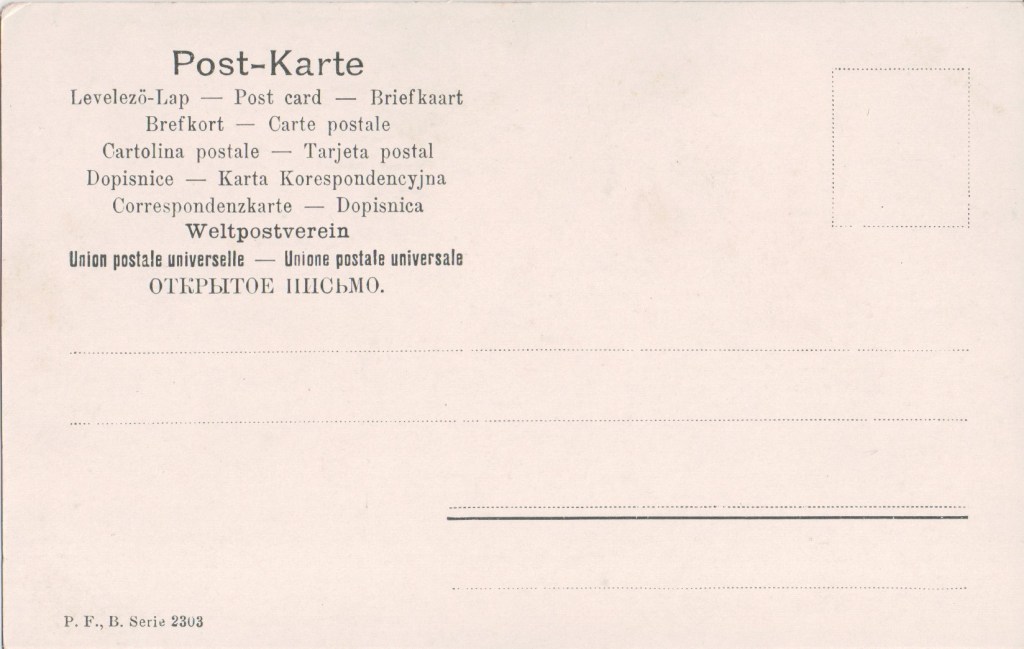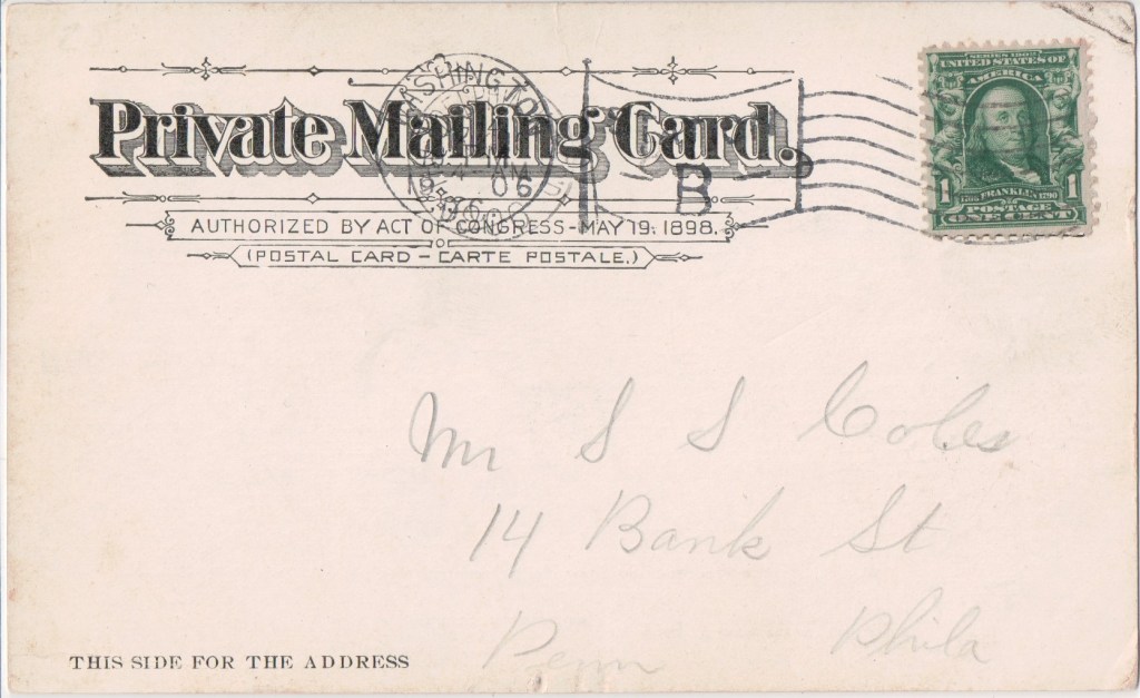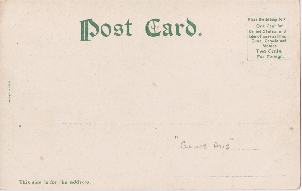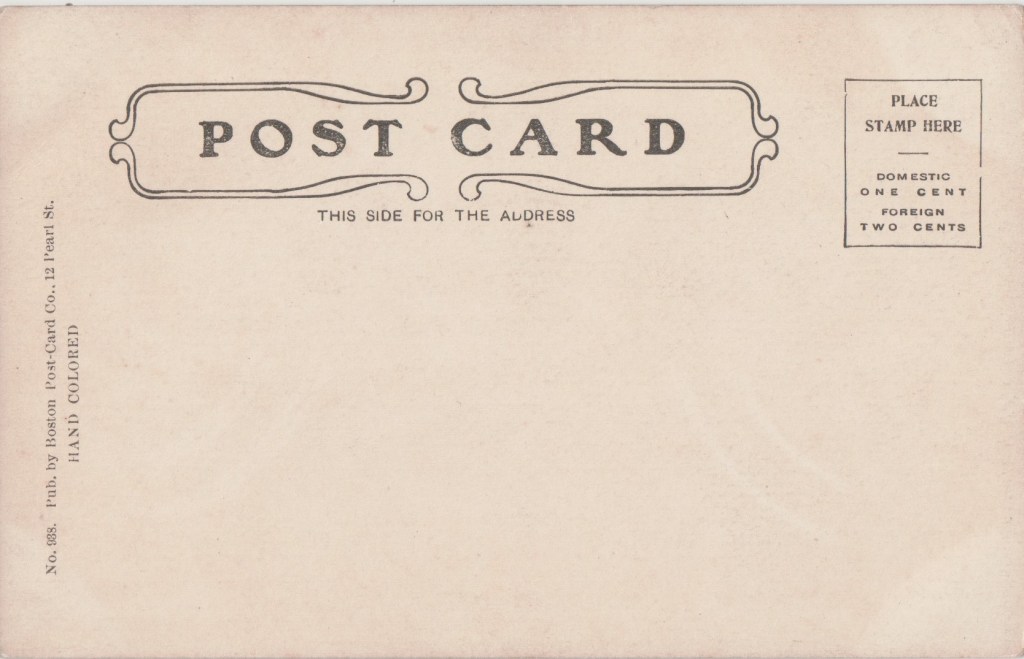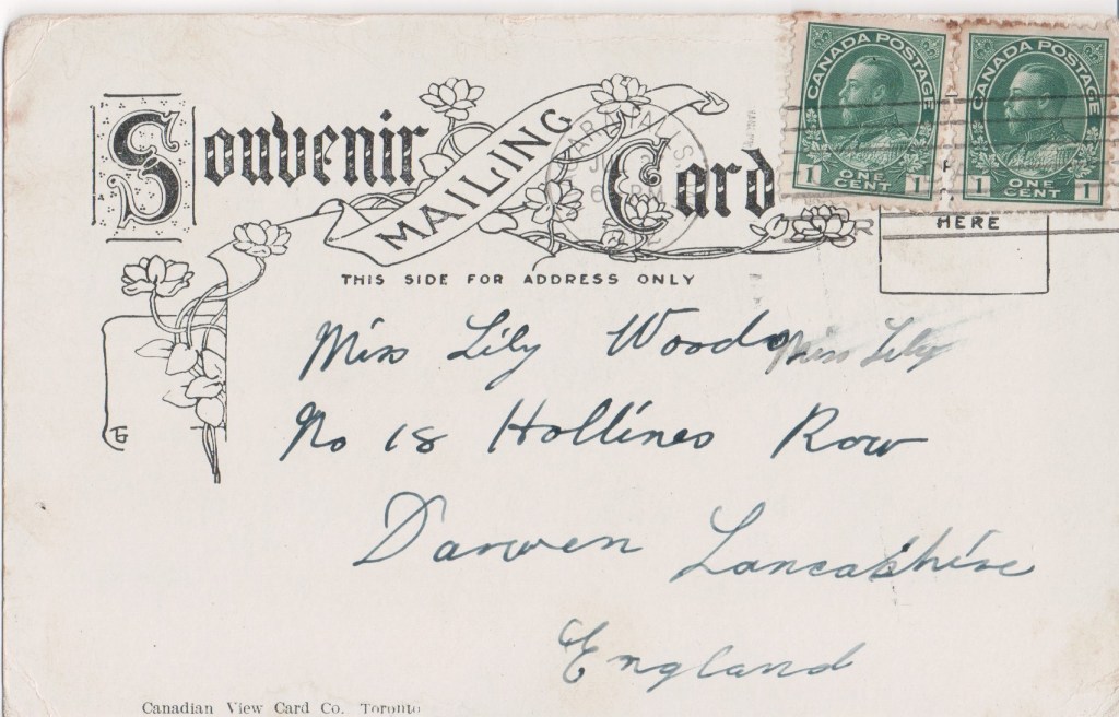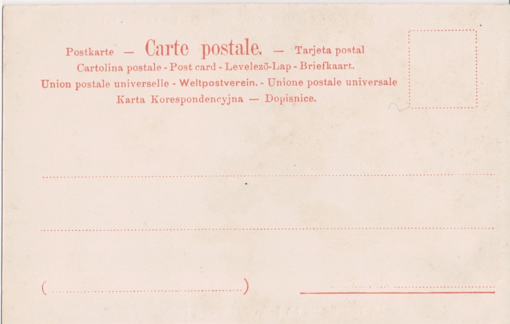 Canadian View Card Company was based in Toronto, and was a prolific publisher of early Canadian patriotic postcards, as well as other early view cards. Their early series of postcards do not often bear the publisher’s attribution, however, the Canada Coat of Arms series shows the publisher’s name and a hugely elaborate Souvenir Mailing Card card back3. The company published into the divided-back era with a selection of elaborate Private Post Card backs.