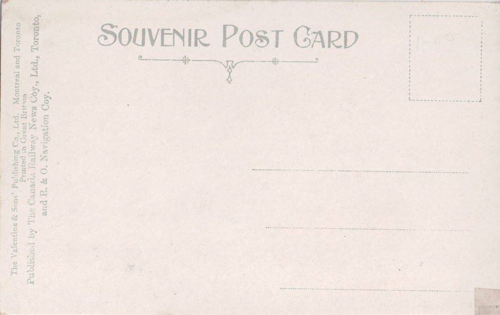The Company published albums of photographs of Canada in the leporello (accordion-fold) format. Valentines published postcards for the company into the divided-back era. They also published a handbook on Canadian company law, the seventh edition in 1907. That year the superintendant and auditor of the Company was JJ O’Sullivan.