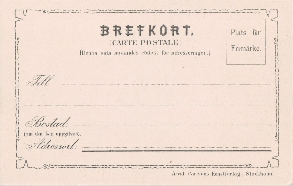 - Arvid Carlson, Stockholm. Imp. Arvid Carlsons Konstforlag, Stockholm.
