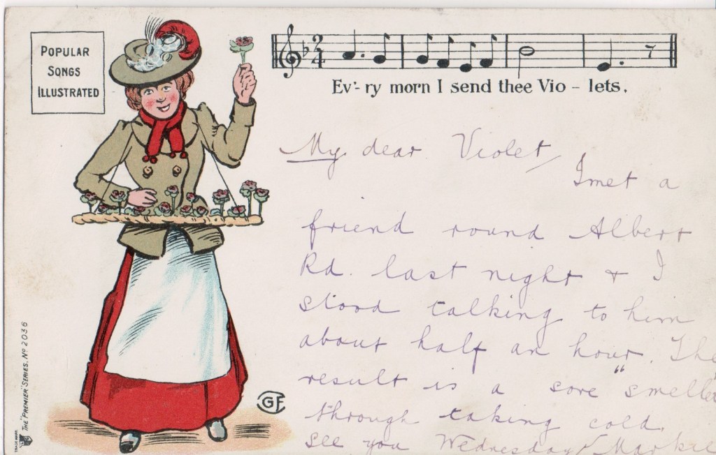 Martin Anderson was born in Leuchars, in 1854. Anderson studied at Glasgow School of Art under Robert Greenlees, in Ingram Street Glasgow. On leaving he worked as a designer at a calico printer. In 1877 he began to provide small illustrations for serial stories in the short-running News of the Week. In 1878 his painting The Music Lesson was accepted for the Royal Scottish Academy’s annual exhibition. In 1879, age 24, he decided to move to London, to study art proper he explained in an 1894 interview in The Sketch. In 1880 he was invited to join John Leng and Co., the publisher of titles such as the Dundee Advertiser, the Evening Telegraph, Peoples Journal, and Peoples Friend, as its staff artist. Accepting the position, Anderson became the first such artist to be employed by any daily newspaper in Britain; until then, daily newspapers were un-illustrated. In 1881, as a freelance artist, he began contributing cartoons and illustrations to the comic weekly The Quiz, an imitation of the magazine Punch. For his illustrations in The Quiz he used the pseudonym bob, but in November 1887 he adopted a second pseudonym, that of Cynicus, and began to move away from the safe and trivial to the dangerous and powerful realm of politics. In 1891 he moved back to London in an attempt to get his work noticed, taking a shop in Drury Lane, with the sign Cynicus Publishing Company over its door and with prints of his cartoons displayed in its windows. In the late 1890s a new market for his products was quickly emerging – that of picture postcards. In 1898 Anderson began working for Blum & Degan where he designed court-sized postcards. In 1902, after the Post Office allowed divided back postcards, picture postcards became very popular and also began to be widely collected; Anderson decided to form his own company. The Cynicus Publishing Company was incorporated as a limited company and began publishing colour postcards by the second half of 1902. These appear to have been hand-coloured by colourists who were mostly girls or young people whose delicate constitutions have unfitted them for hard labour. Anderson’s card The Honeymoon depicting the happy couple in the throws of seasickness was deplored by The Picture Postcard Magazine: “A very unpleasant subject … utterly unfit for portraying on a postcard.”