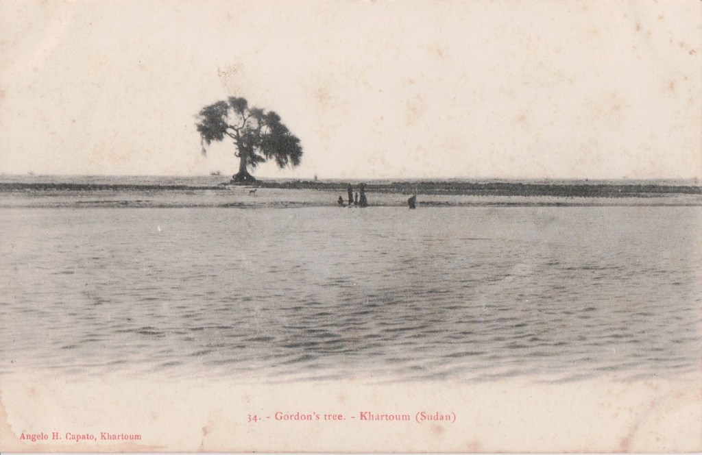 At some stage Gordon’s Tree acquired a railway station of the same name. In 1930, a number of pots and other antiquities were found during the construction of a new dockyard on the White Nile near Gordon’s Tree for the Egyptian Irrigation Service. By the end of 1941, a medical clinic and by the end of WWII it had an airfield. Into the 1980s the Blue Nile Sailing Club set aside two weeks a year for racing in the White Nile at Gordon’s Tree. The name doesn’t register on Google Maps.