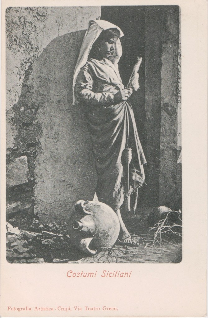 Giovanni Crupi, photographer, Via Teatro Greco, Taormina. Crupi, a man of refined, shy and introverted ways but a brilliant and keen innovator, he is credited with originating Sicilian artistic photography. Crupi was elected a city councillor on 9 November 1889. He lived in the splendid Villa Mon Repos, now a hotel. There he was part of the glamorous society that wintered in the mild climate of Taormina. He was especially devoted to the entourage of the Latvian baroness Stempel, whose lady-in-waiting he married. Crupi opened his Artistic Photography studio in 1885 in via Teatro Greco with a branch in Piazza Duomo. Crupi devoted his whole life to artistic photography, anthropological types, trades, period costumes of the Sicily of time. His photos create distinct atmospheres of the Mediterranean and include views of the archaeological sites of Taormina, Syracuse and Agrigento. From 1901 to 1910, while Crupi was in Heliopolis, Egypt after the collapse of his finances53, the Taormina photo lab continued its activity thanks to his nephew Francesco Galifi54.