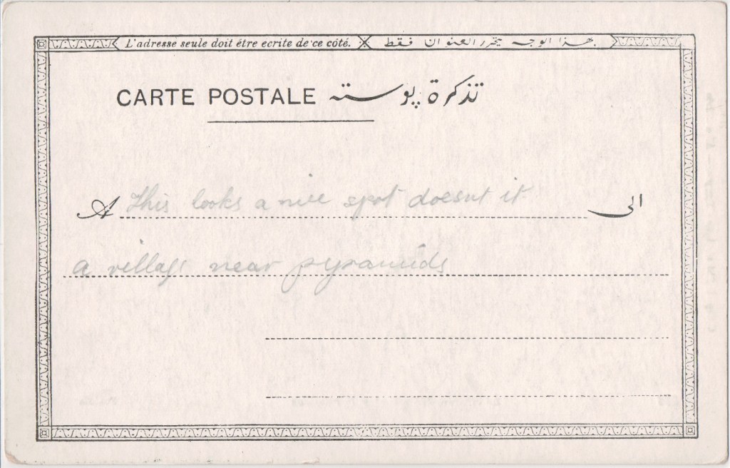 This card: This card shows Gordon’s tree as a tall tree in the middle of an apparently empty plain near Khartoum. It reflects what visitors and residents were told. In 1925 Colonel W Stanton, writing in Sudan Notes and Records, put the record straight: The tree in fact marks the tomb of Mahu Urfali Bey who was Governor of Khartoum from May 1825 to March 1826 and who died in 1828. After the British re-occupation of Sudan in 1898, Lord Kitchener allowed a few tourists and a trip up the nearby White Nile was laid on for them. The association with Gordon, who had died in 1885 defending Khartoum, was spuriously created as a point of interest.