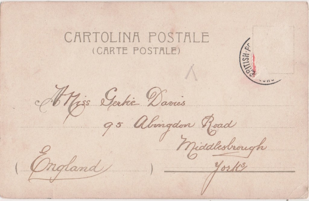 Vincent B. Cumbo (born 186956) photographer, 157 Main Street, Gibraltar57 – later Cumbo and Montegriffo (qv) – was one of the larger local publishers of souvenir photo-booklets and tinted collotype view-cards depicting Gibraltar and Tangiers. The company probably produced most of its postcards during the early 20th century although they continued to be sold long after that58. The Souvenir of Gibraltar Postcard Folder of 12 cards he published is widely dated about 1920. Cumbo took some photographs at the bullring portraying different bullfighting scenes between 1915 and 1920. My photocard of a Moorish Girl in Tangier with the initials V. & J. C. clearly indicates cooperation with his relative Joseph. In the 1901 Register Of Inhabitants in Gibraltar, Vincent Cumbo is listed as aged 42 and born in Malta. He was a self-employed dealer in Moorish Curiosities. He lived at 13 Waterport Street with five others. He was single and had the family relationship of nephew – presumably living with an aunt. By 1911 the number of adult Cumbos in Gibraltar had increased from 3 to 7. Vincent was now 52, married and the head of the household at 17 Church Street which was said to have 24 rooms. He was self-employed in the occupation read and write. There he is listed as Vincent V Cumbo. On one level, the difference of name and date of birth from the other information available makes the position unclear but it seems curious if they were different people.