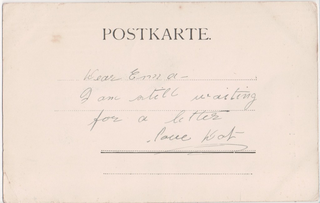 Albrecht & Meister of Berlin were fine-quality book and lithographic printers24 founded about 1869. Around 1900, they were at 14 Courbièrestrasse, Berlin and they later had depots in London, Paris and New York. Some of their undivided-backs were imported to the UK by Misch & Stock (qv) who overprinted them with their own name. They became a limited company with effect from 1 January 1904 after which they also used the logo Amag, an acronym of Albrecht & Meister AG. At the beginning of 1905 they acquired a luxury paper factory25. In September 1909 Albrecht & Meister took over Aristophot AG who published real photo cards26. Misch & Stock in London (qv) published their cards in their own name.