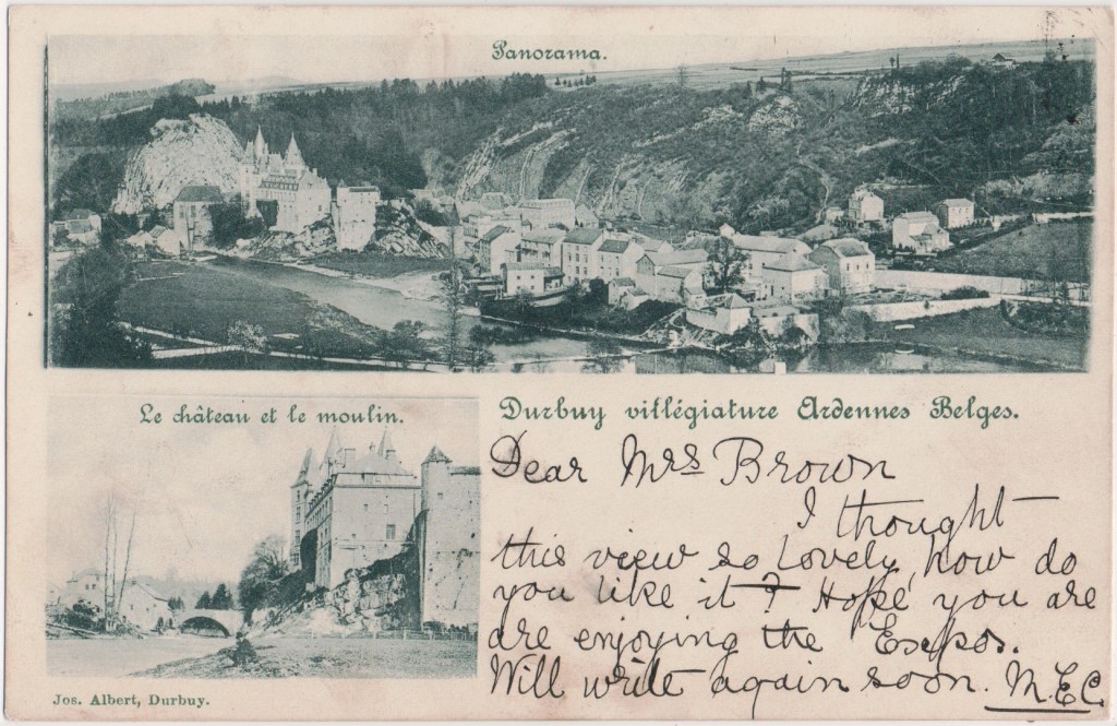 This card: Mrs Brown was attending the Paris Exposition of 1900 and staying at the Hotel Burgundy. The Hôtel Burgundy, 8 Rue Duphot, opened in 1850. Anglomania was the rage and Burgundy may have been picked to appeal to clients from Victorian England who were flocking to Paris.