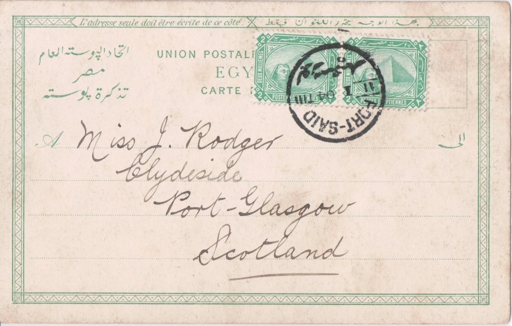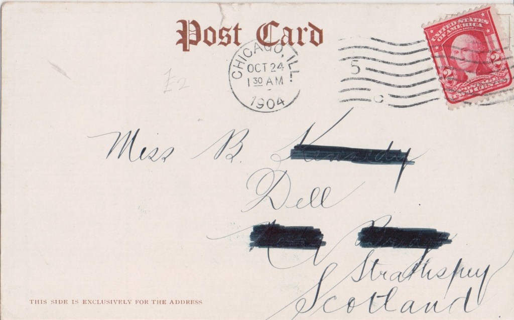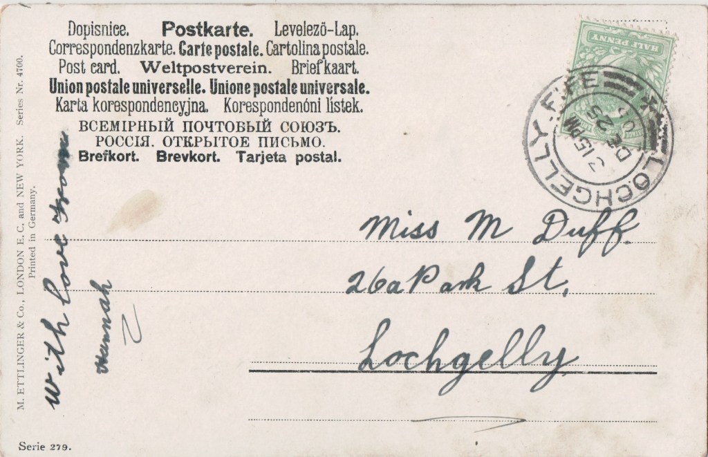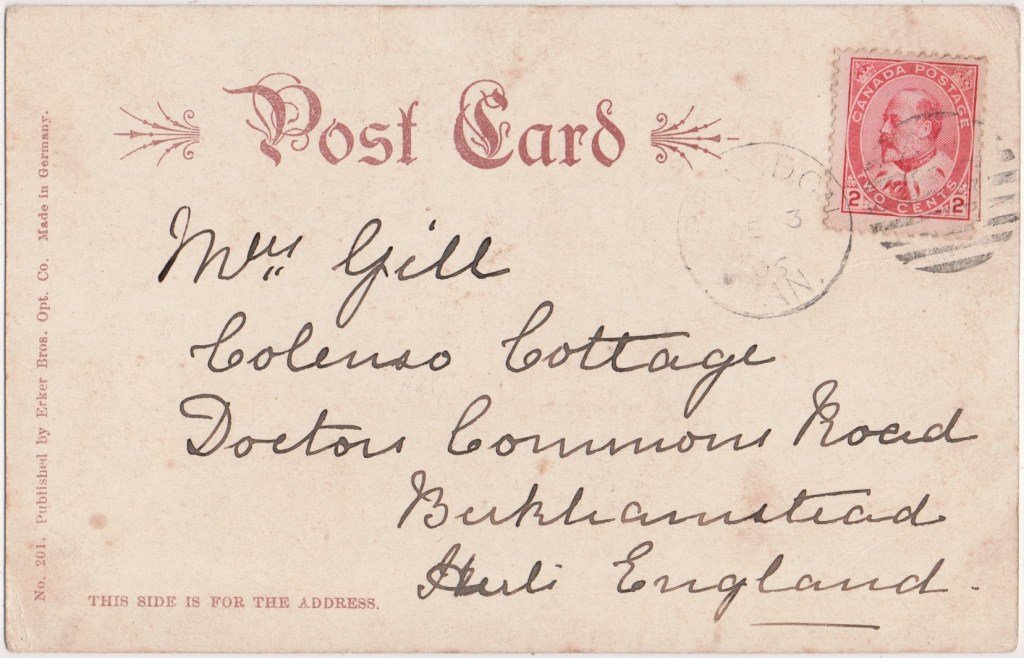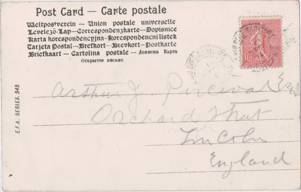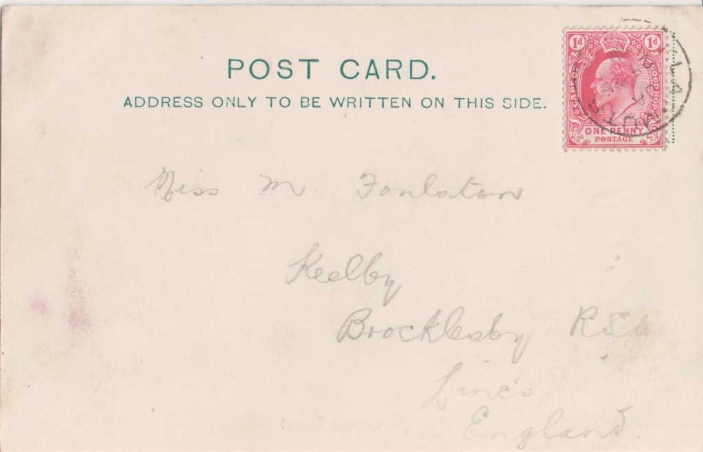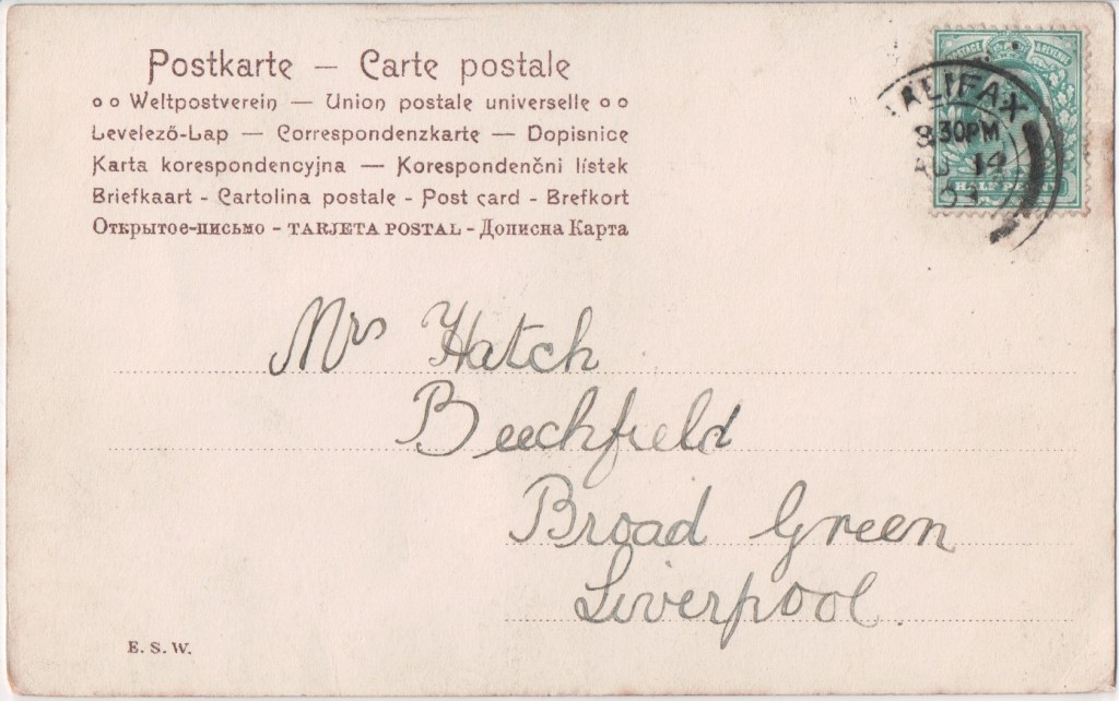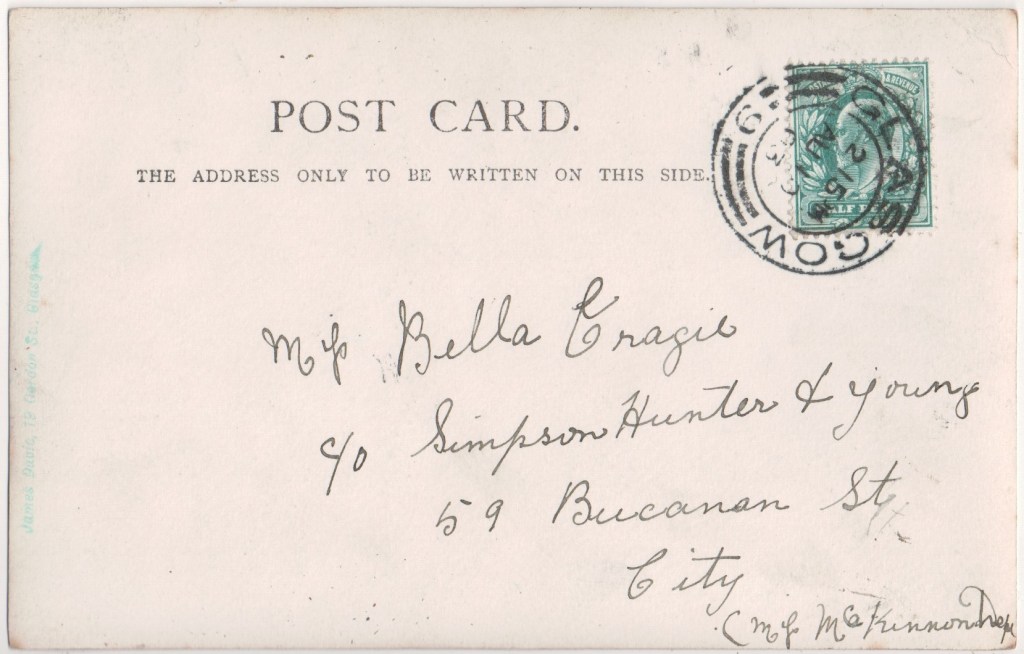 As well as registering his own photographs for copyright, he also owned copyright on photographs taken by Walery and Alexander Corbett. Copyright on some of Ellis’ photographs are also owned by a Joseph Bruce Ismay. Alexander Corbett in turn produced photographs which were registered for copyright by both Alfred Ellis and George Bryden Phillips. This card bears the wording Copyright R. F. C. which doesn’t fit with any of these.