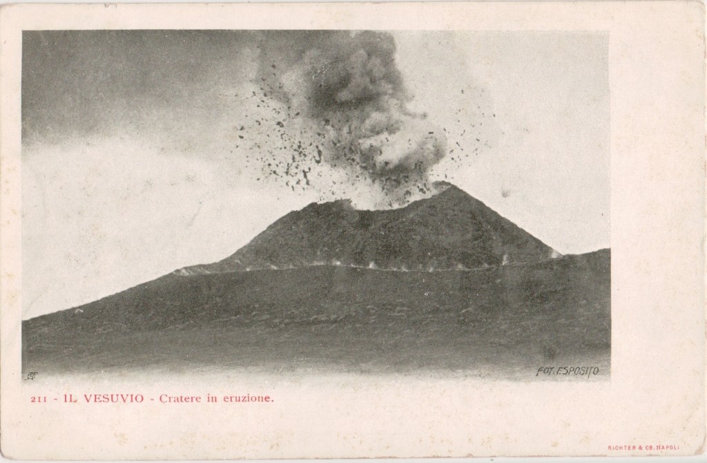 Pasquale Esposito took a dramatic photo of an eruption of Vesuvius on 26 April 1872. He was joined in the business ‘Artistic Photography Pasquale and Achille Esposito’ by his son Achille. As well as monochrome images, the Espositos produced coloured photo-chromolithographic pictures. Their work included significant urban and landscape views of Naples and its territory (Capri, Sorrento, Amalfi, Pozzuoli, Pompeii), but the most original and historically relevant part is made up of the shots of habits, customs and scenes of urban and sea life, described by the Espositos as “artistic scenes”.