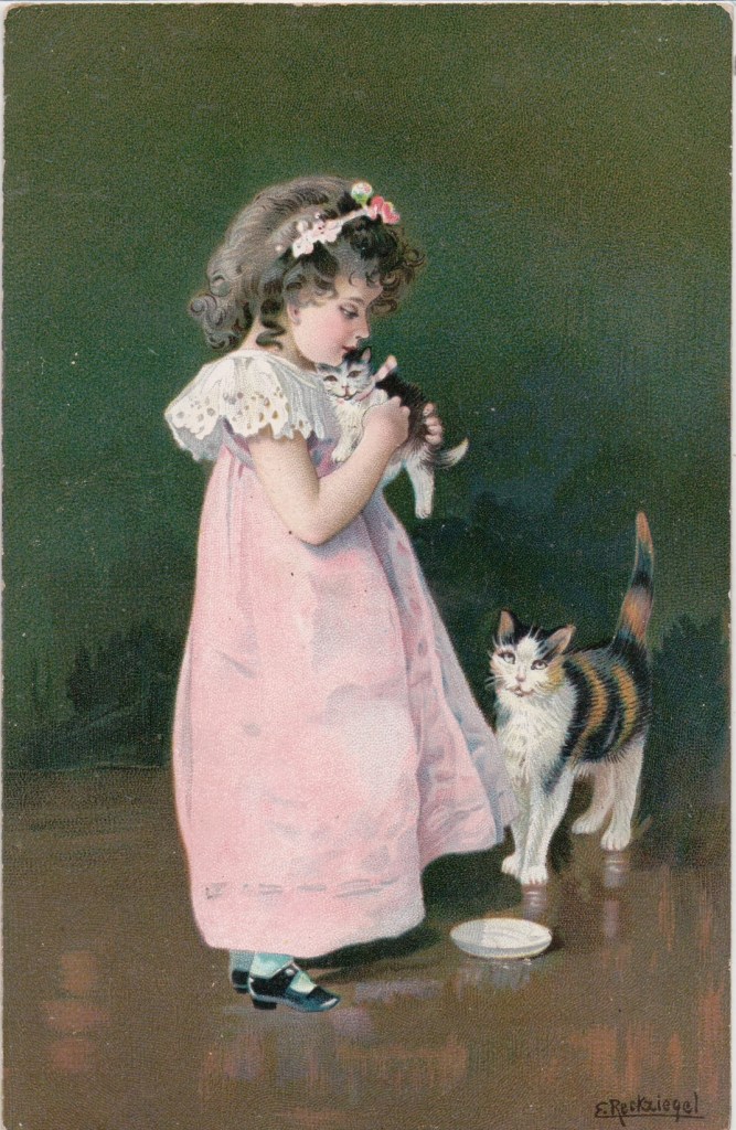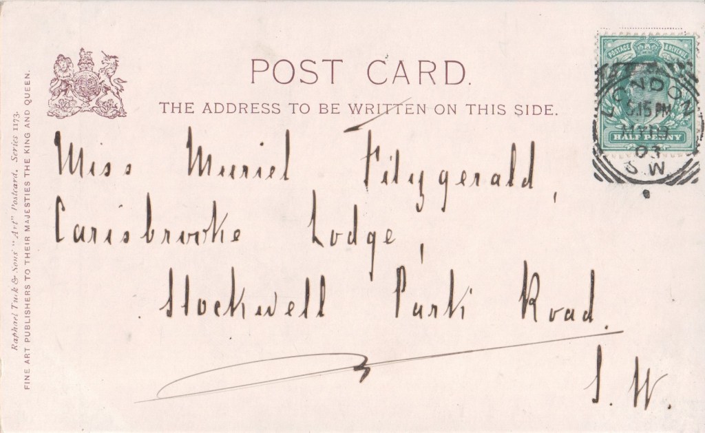 Eyre and Spottiswoode was founded by George Edward Eyre and Andrew Spottiswoode in 1845 on Fetter Lane, London. They were the King’s Printers, printing for His Majesty’s Stationery Office. They branched out into Christmas card printing, and by the late 19th century were also printing postcards under the Woodbury Series name.