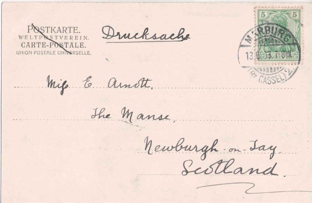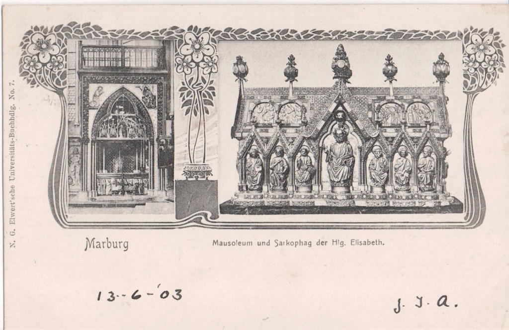 Marburg was awarded town privileges in 1222, The University of Marburg was founded in 1527 and dominates the public life in the town to this day. The Marburg University Bookshop published scientific and other academic textbooks such as Basics of zoology by Carl Claus (1872), The Historical Development of German Metrics (1897), E. Maass’s Analecta sacra et profana (1901). It also published a number of scientfiic periodicals. The Bookshop has published histories of itself over the years up to 2001.