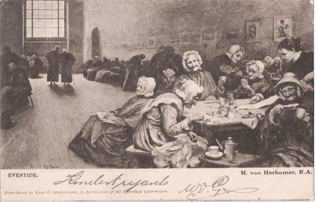 This card: Sir Hubert von Herkomer CVO RA (born as Hubert Herkomer; 26 May 1849 to 31 March 1914) was a Bavarian-born British painter, pioneering film-director, and composer. Though a very successful portrait artist, especially of men, he is mainly remembered for his earlier works that took a realistic approach to the conditions of life of the poor. On her deathbed, Queen Victoria was initially photographed in study and eventually painted by Herkomer as an alternative to the more traditional mask produced in wax, which her son, the new king Edward VII, decried. Despite being a prominent member of Royal Academy of Arts, Royal Watercolour Society, and Royal Society of Painter-Etchers, as well as being on familiar terms with the royal family, Herkomer was never totally accepted by the British establishment, as he was ultimately a victim of the deteriorating relationship of Great Britain and Germany, which he shuttled in between, spending most of his summers in Bavaria. Source: wikipedia