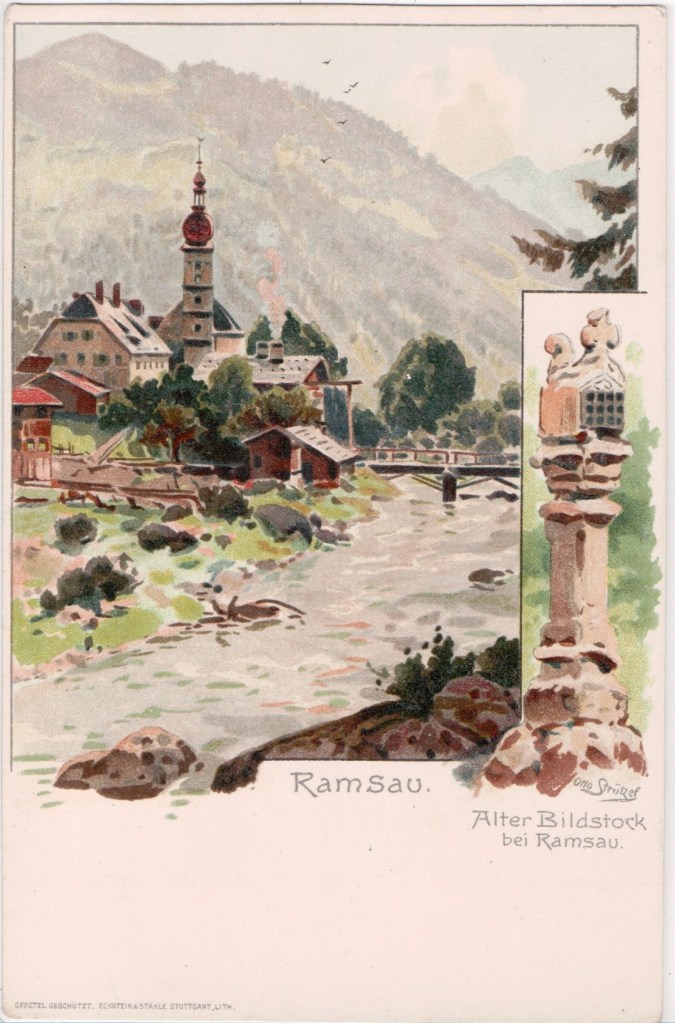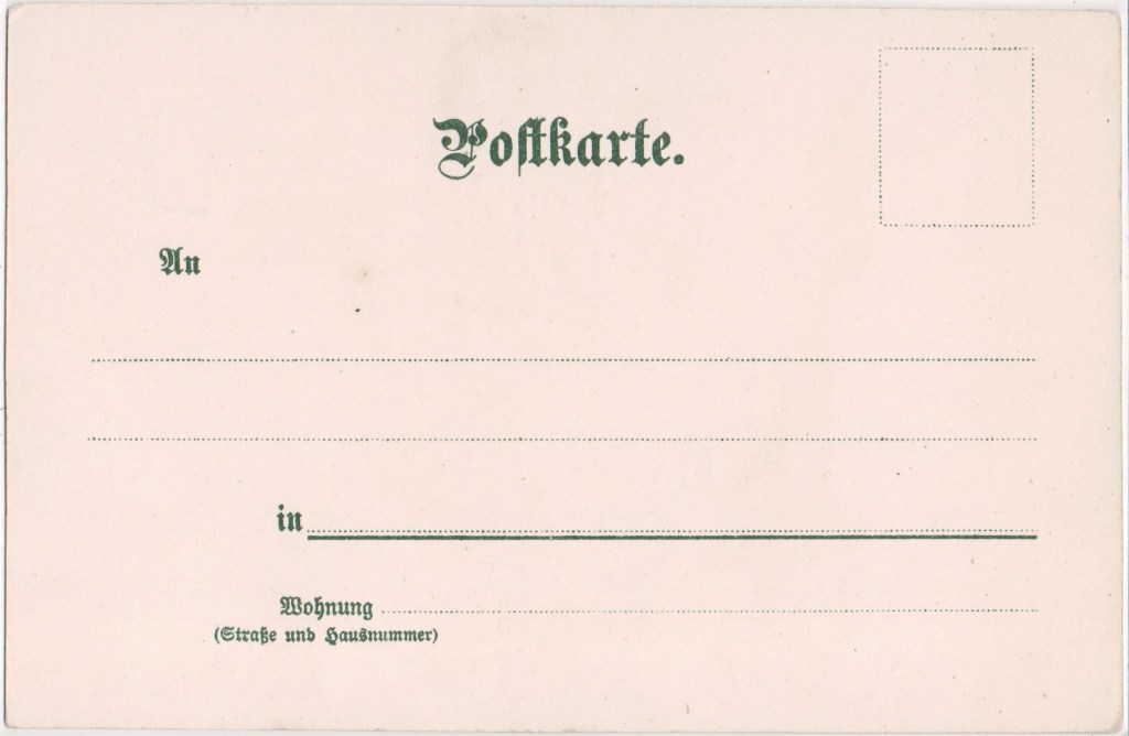 Eckstein & Stähle, printers, founded in Stuttgart in 1852 by Adolf Eckstein and Karl Staele. Early cards featured the art work of Otto Strutzel. In 1902, they were described as Königliche Hofkunstanstalt1 when they printed a book of fine lithographed botanical images which was published by Lutz of Stuttgart. In 1903 they were members of the Commercial Political Association of the German Art Print Industry2. Eckstein & Staehle moved into the former Bachner brewery at 70/1 Augustenstraße in the 1920s. The company stored their printing blocks, made of Sollnhofer slate, in the basement3. Eckstein & Staehle GmbH & Co. KG still seem to be engaged in the production of art prints, artistically valuable maps, globes, as a limited partnership.