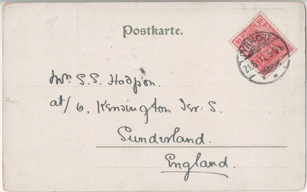 August Wilhelm Ecks, 10b Braunschweigerstrasse (entrance Kleine Aegidienstrasse) in Hanover was a book printer and folding-box factory. He also produced, among other things, postcards.