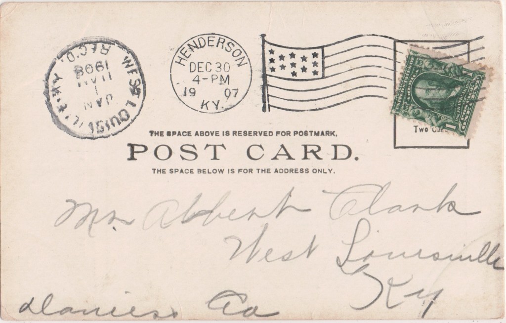 Meantime, here’s a rather sweet card by an unknown publisher bringing Christmas greetings in 1902. It is one of the few undivided-backs to feature a motor car.