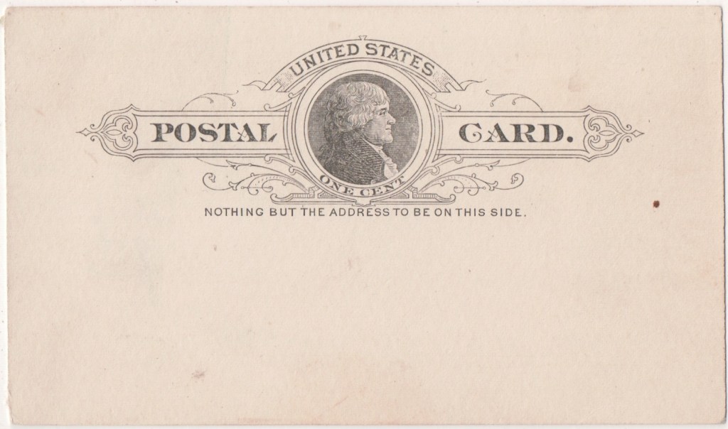 This card was issued from 1886 by the United States Post Office Department and features Thomas Jefferson.