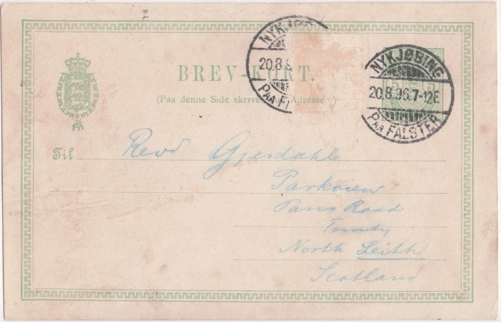 This card was postally used in August 1896. It has a 5 ore stamp.