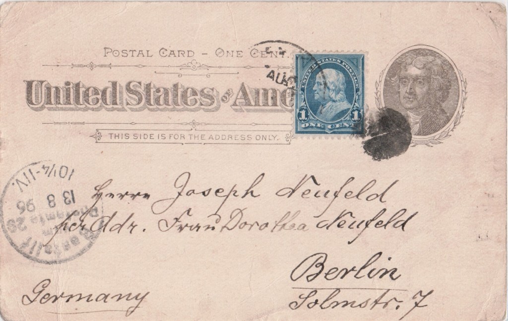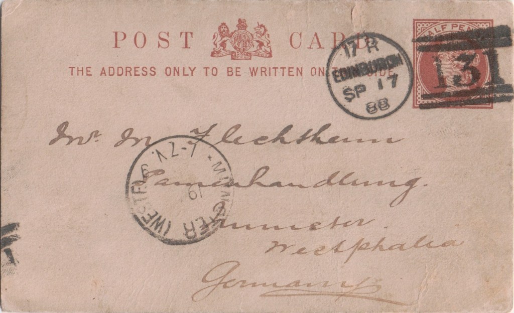 This card appears to suggest that their salesman will call on a customer in Munster, Westphalia, then a province of Prussia, in a few days.