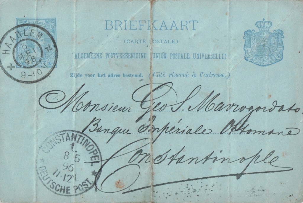 This card from Netherlands arrived in the German post office in Istanbul which existed between 1870 and 1914.
