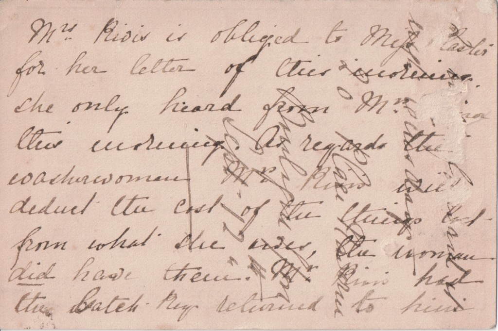 Woodman Peters had 10 siblings so there would be no shortage of family members to conduct correspondence for the business. This message is puzzling since the china-clay miners seem to be arranging transport for the ship brokers rather than the other way round.
