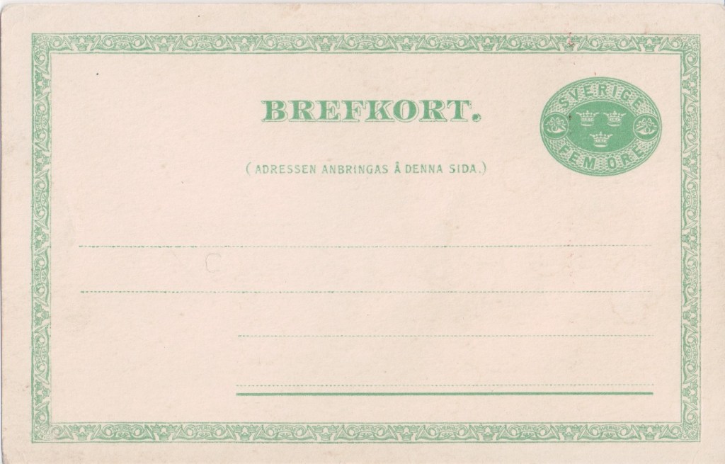 Sweden issued its first cards in 1872. This card is from the 1889 issue that was still current in 1902.