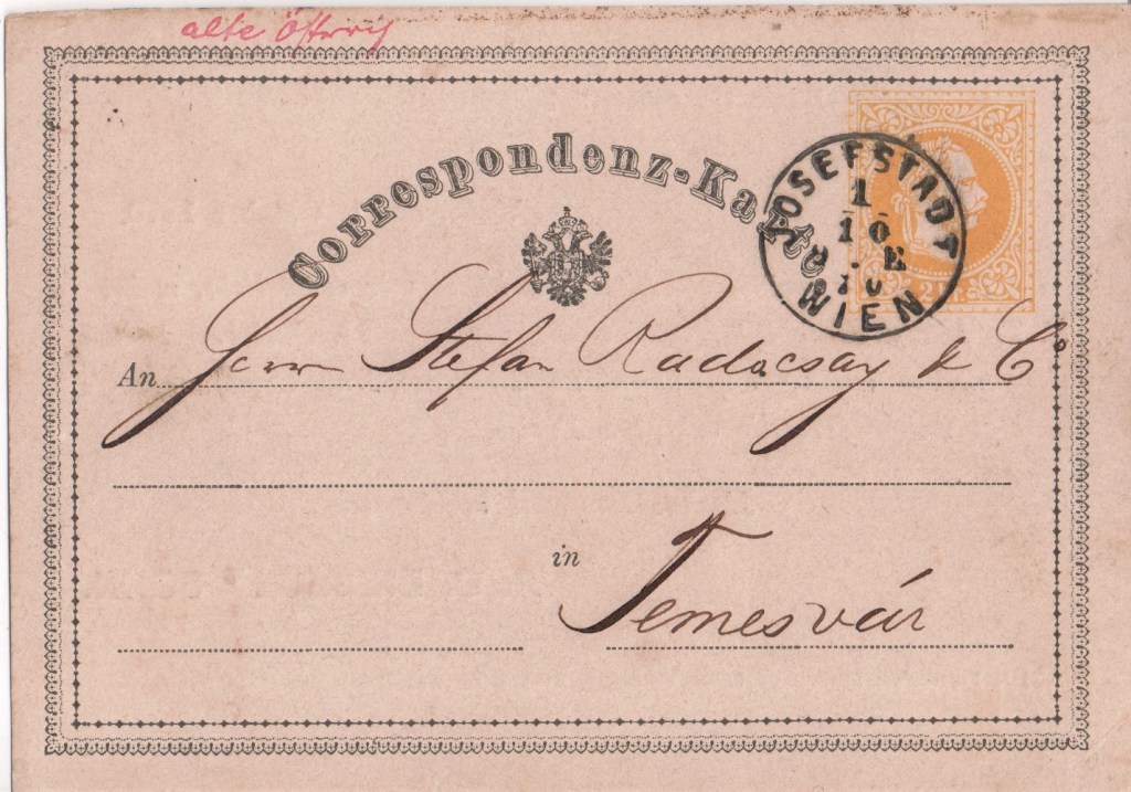 However, about half of present day Romania was part of the Austro-Hungarian Empire until 1918, including the provinces of Transylvania, Bucovina, Banat Crisana and Maramures. These provinces were ruled by the Habsburgs for centuries before becoming part of Romania. The card above is from that part of the country while the card below is from the newly-formed state. The first cards were issued in 1873 with a five bani stamp.