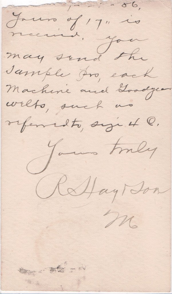 “Your P.C. is to hand. We have nothing for the size you […] except for Boston. We could fix the Julius for Boston but for nowhere else.