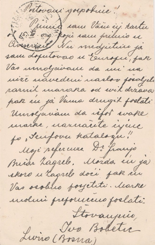 Formally annexed by the Austro-Hungarian Empire in 1908, the first stamps under this regime were issued in 1910 and this card was postally used in 1911. It was all-change again after WWI when the Austro-Hungarian Empire came to an end and the provinces joined what in 1939 became Yugoslavia. Following the dissolution of Yugoslavia, the republic proclaimed independence in 1992, which was followed by the Bosnian War, lasting until late 1995 and culminating with the Dayton Agreement.