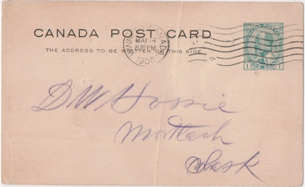 On the same day as he sent this card (5 December 1903) Daniel posted another card from the same series to a woman in Jersey with the same message, discouraging her from sending more postcards.