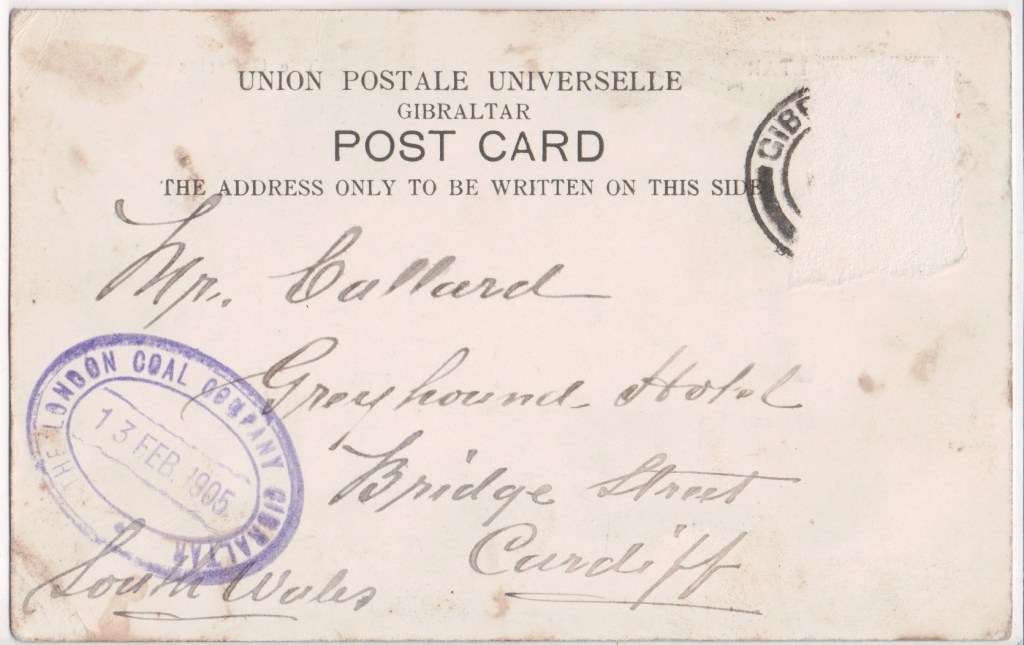 Sailor Tommy sent this card from La Spezia to Miss Fry, Schoolmistress at the Garrison Infants School in Curragh Camp, County Kildare, Ireland.