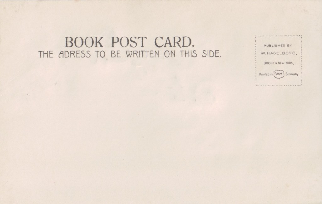 - in the stamp box: PUBLISHED BY W. HAGELBERG, LONDON & NEW YORK, Printed in [WH monogram in shield] Germany