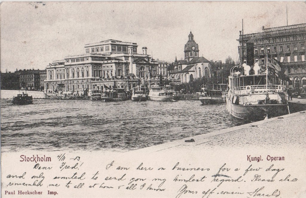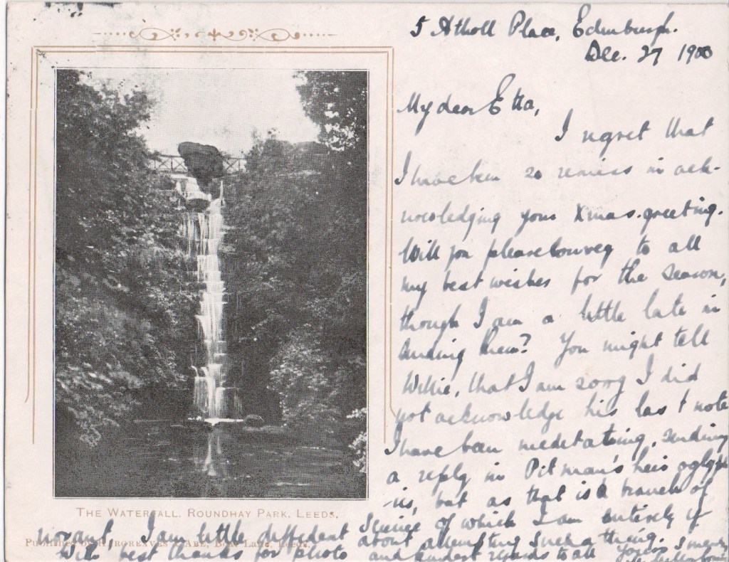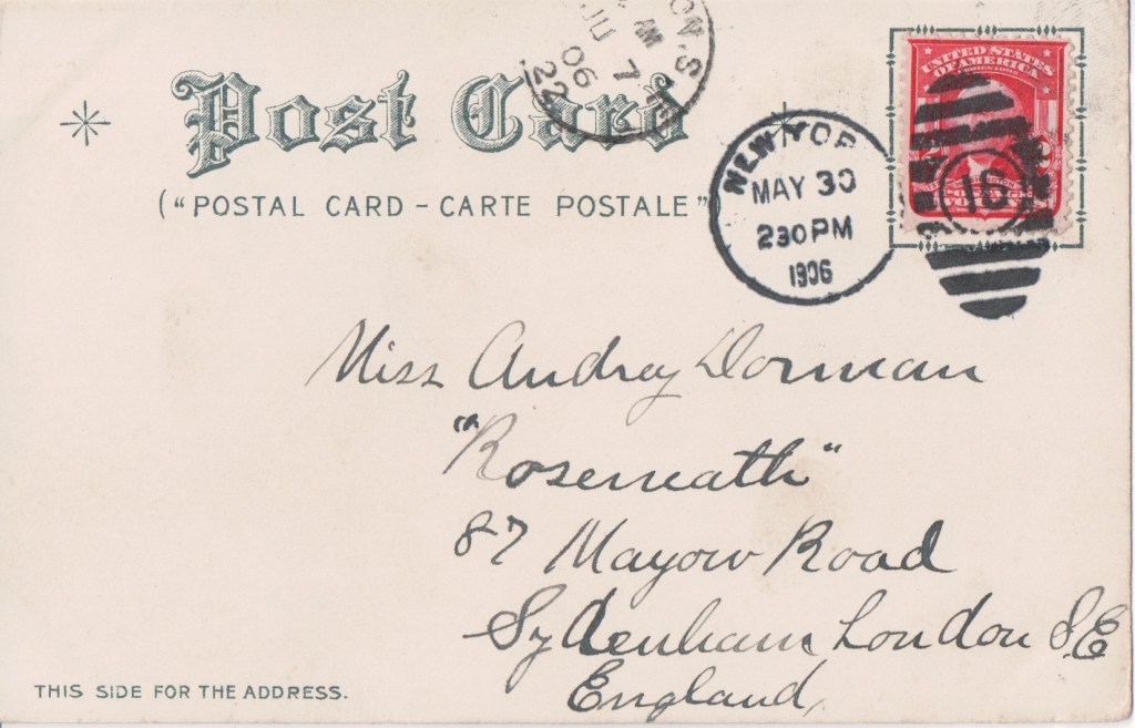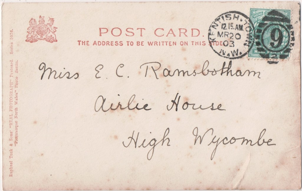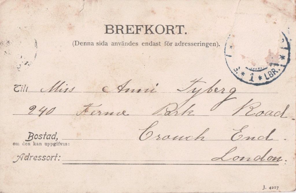This card was sent by Pat in June 1903, at the height of the midnight sun, to Mrs W B Sellar OMS [or DMS] Fraser Buildings, St Sacrament Street, Montreal, Canada. At that time there were may have been two Mr WB Sellars in Montreal; W. B. Sellar who was a QC there in 1886 and one who was born in 1849, at Keith, Banffshire, Scotland. He went to Canada in about 1887, representing Messrs. Heyman & Alexander, lace-makers of Nottingham, and made his home in Montreal thereafter. In 1907 Style journal of the clothing industry reported that he had died in London, after having taken ill while on his customary trip to the Old Country.
