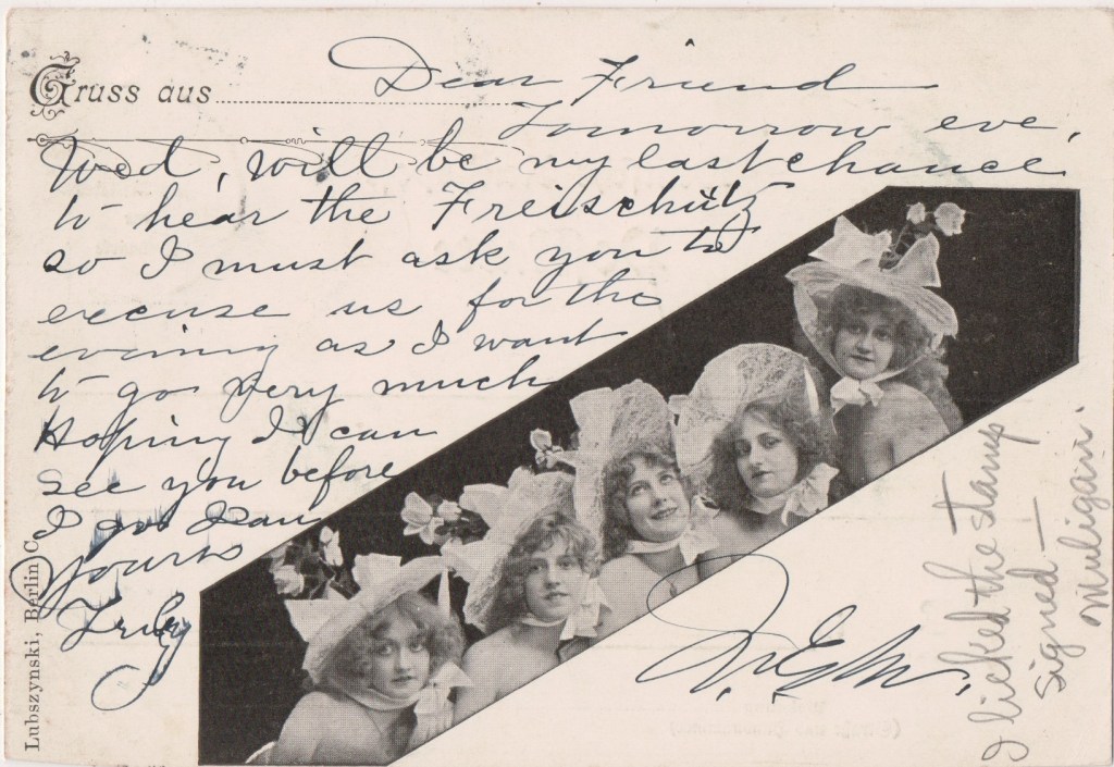 Lubszynski published this Gruss aus card of showgirls which was postally used in 1898.