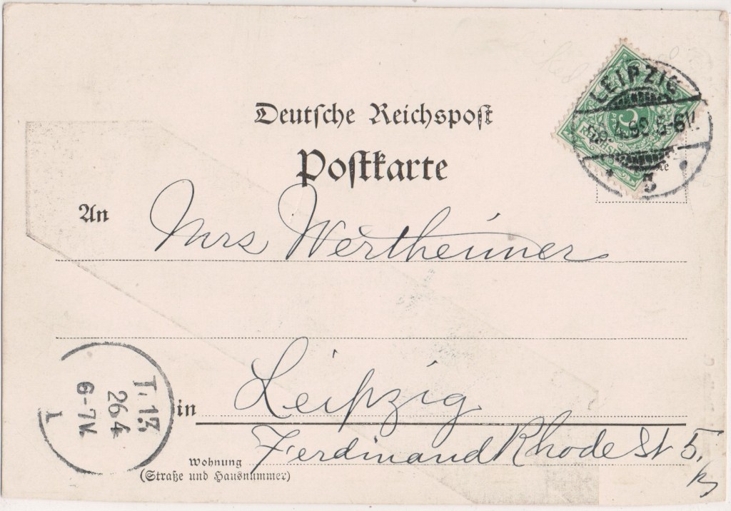 Otto Robert Hermann, printer, 29 Thalstrasse, Leipzig. Ludewig published postcards from the early Gruss aus style. Ludewig was in business before 1900 and used both processes, letterpress and lithography, he appears to have avoided the typical, popular then chromolitho “Greetings from…” cards. The business moved 50 Schoenbachstrasse on 29 October 1906 where from May 1907 the postcard publisher Trinks & Co. also was. Ludewig specialised almost entirely on picture postcard printing. Some of his undivided-backs boasted Autocolor. He is said to have employed up to 100 people during the boom years but by late 1910 it had dropped to 60 to 70. In 1924 the business was taken over by well known local printing company Guenther, Kirstein and Wendler. Both firms were now at 50 Schoenbachstrasse and the business continued under the name Hermann Ludewig. Besides picture postcards, the company concentrated on catalogue and colour printing in general.