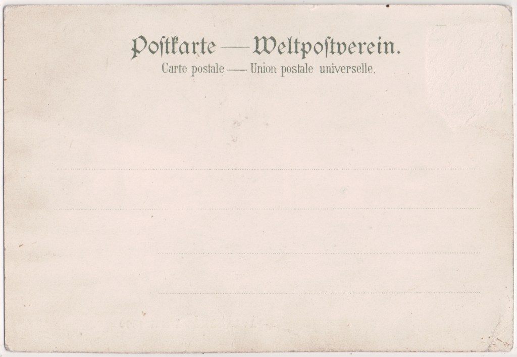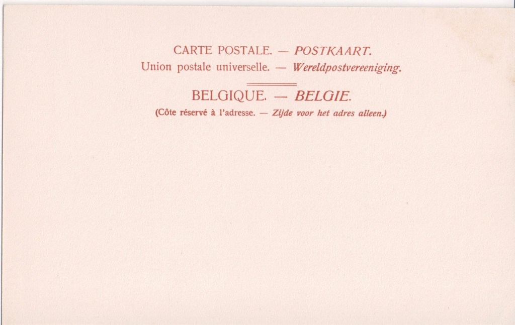 The Dutch Rotogravure Society, 22 Galgewater, Leiden. It seems to be authoritatively held that following a deal made on 20 February 1912, A.W. Frenzen of Leiden founded the ‘Nederlandsche Rotogravure Maatschappij N.V.’ on 14 May, 1913. How this fits with there being postcards from the undivided-back era and this card postally used in March 1905 is perhaps that NRM existed as a partnership or trading name earlier and became a limited company (NV) in 1913. Some of their cards also bear the logo of Cormault & Paphegin (qv).