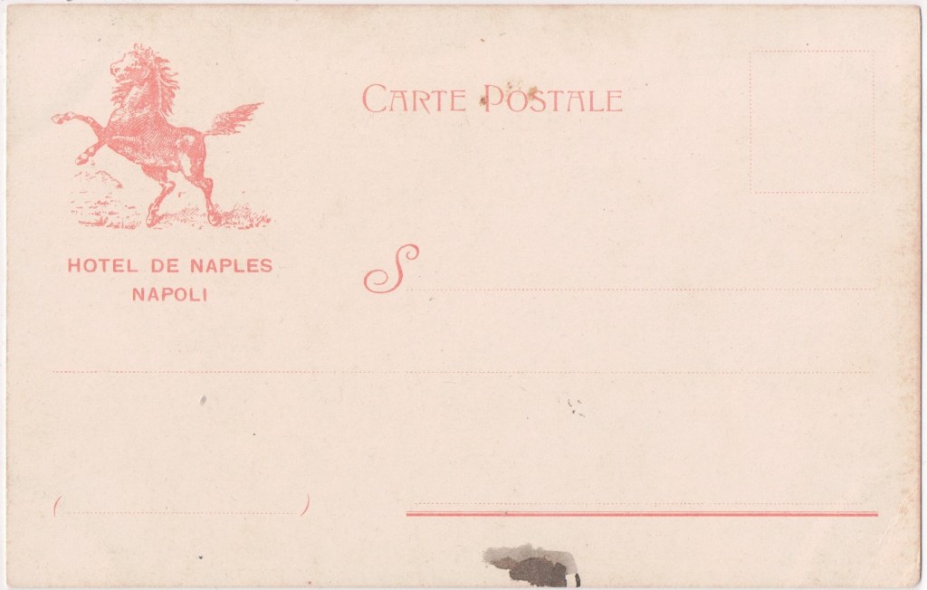 Hotel De Naples, 55 Corso Umberto I, Naples (now the Hotel Naples). Founded 1896, the hotel was in the ownership of Andrea Cavalieri between at least 1907 and 1915.