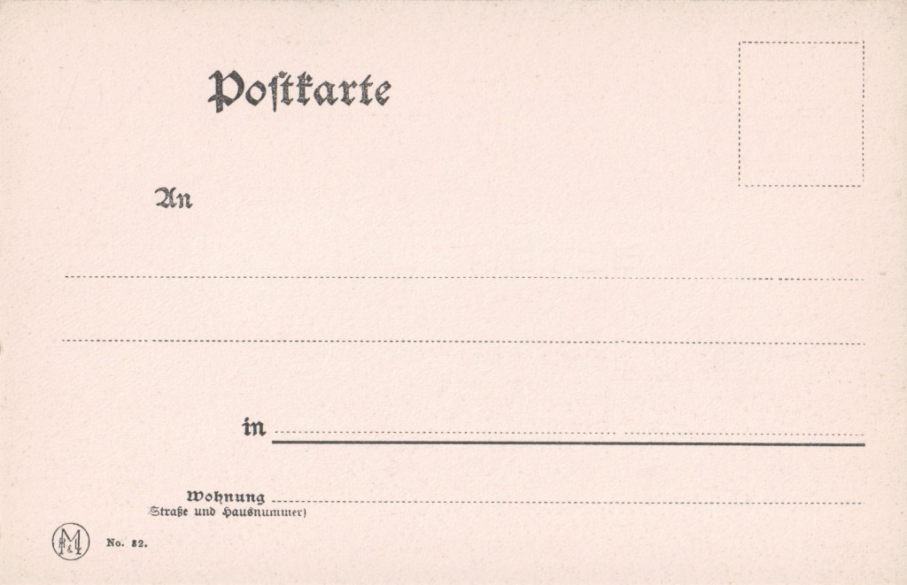 Reiner & Lippacher, Court publishers, Munich, published local topographic photo and Gruss aus cards and New Year 1899 greetings cards. In 1906 the company sued a former bookbinder in Vaduz, the capital of Lichenstein for 520.69 Marks. In August 1915, the business was in correspondence with the Aktien paper factory of Regensburg. In 1923 the business was at 62 Schwanthalerstrasse. In 1937 Reiner & Lippacher GmbH’s paper and stationery shop also sold prayer books and picture books.