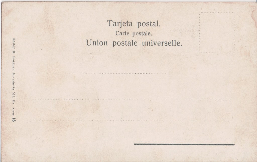 Lorenzo José Rosso (8 February 1871 to 10 July 1936) printer and publisher, 463 Belgrano Street, Buenos Aires. Rosso began work as a graphic artist in 1893. Four years later, he moved to a larger workshop and named his company Argentine Graphic Workshops by L. J. Rosso. In 1906 he started using the first three linotype machines in Argentina. Linotypes mechanise the process of composing a text to be printed. In 1911 he brought in the double press, with which he start printing newspapers and magazines. Rosso won awards in exhibitions in France, Turin, and San Francisco.
