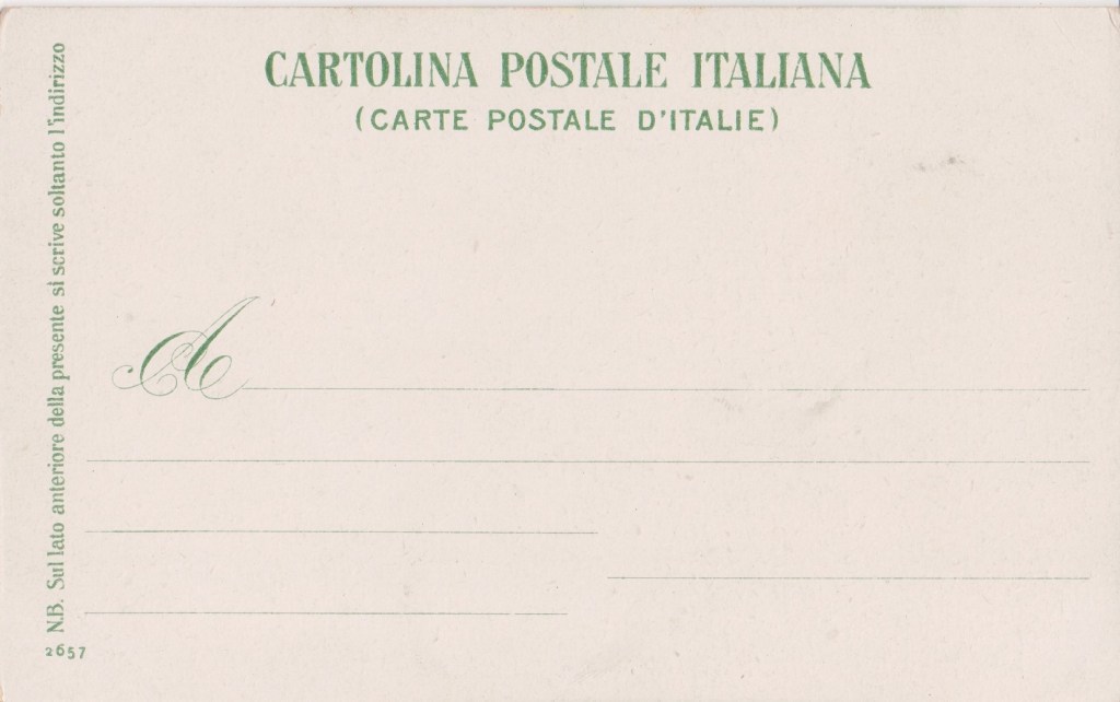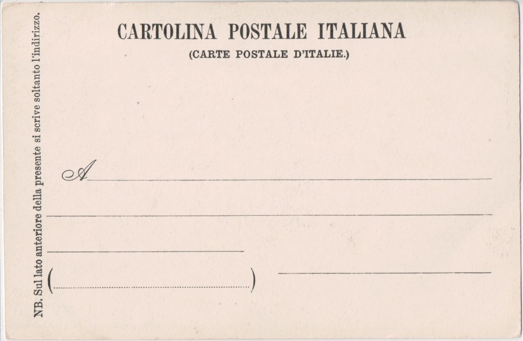 Ettore Ragozino was one of the foremost stamp dealers in Italy and was located in Naples. Between September 1895 and at least November 1901, he published the journal Stamp Trading … a quarterly journal that simply deals with stamps. He also had shops in Naples for the sale of postcards, both wholesale and retail, the latter at the Galleria Umberto I. Sr Ragozino was recorded in the London Philatelist for 1898 as a visitor to that year’s Philatelic Exhibition in Turin. He published books of photographs of Naples and area up to 1930. He published the works of leading photographers Caggiano (qv) and Esposito (qv). My card of a painting of a castle at Naples was printed by Armanino Brothers of Genoa (qv) while artist-painted images of a young Neapolitan woman were jointly published with Stengel. Other cards were jointly published with Benzo brothers of Cassine (qv).