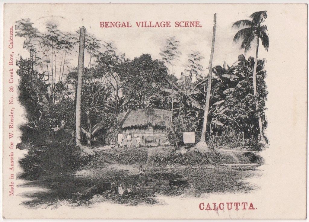Austrian publisher and photographer Rossler, 30 Creek Row, Calcutta. Possibly as early as 1897 Rossler published a Greetings from India composite lithograph card. He published black and white photocards of Calcutta in court and standard size cards. The Creek Row address was on court cards.
