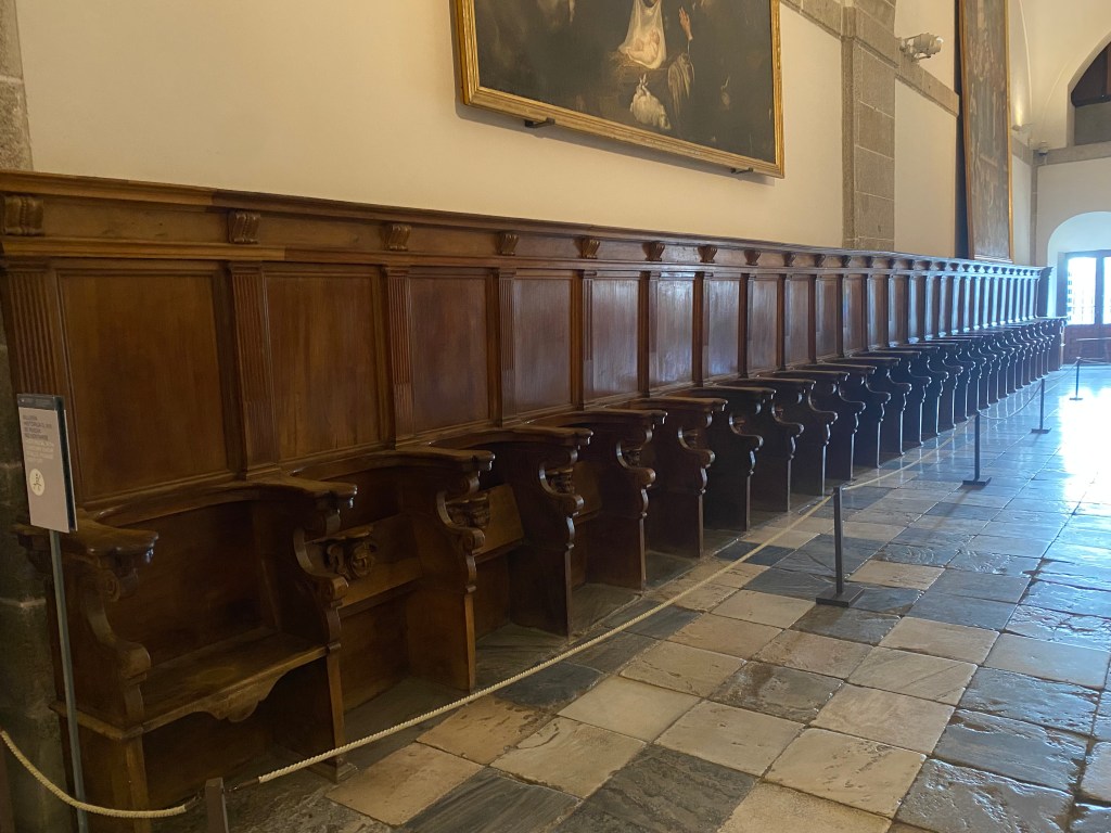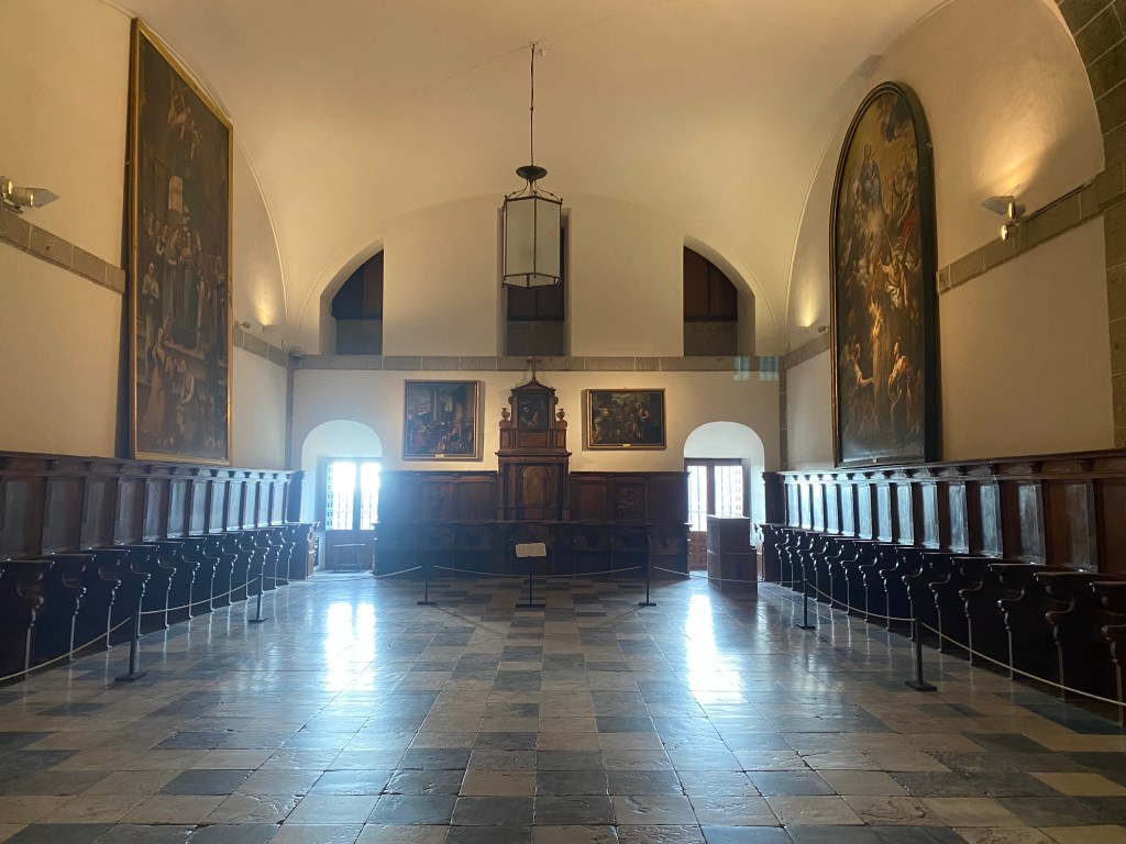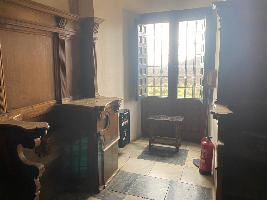 The Old or Provisional Church was the most important area of the building during the initial stage of the construction of the Monastery. It was used provisionally as a church from its completion in 1571 until the Basilica was ready in 1586. The first burial chamber of the Spanish Habsburg family was also located beneath its chancel. Philip II’s first quarters were located at the back end and above them was a small upper choir with simple stalls crafted by the French carver Rafael de León, where the friars prayed for the deceased. From 1591 onwards the church was used as a chapel where burial services were held for members of the religious community. For this purpose, its structure was converted into the open space visible today, with jasper steps and rails and the current stalls, which were adapted from the former upper choir stalls by the carpenter Martín de Gamboa between 1591 and 1592.