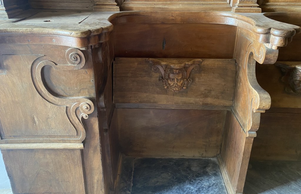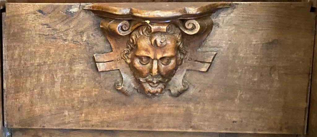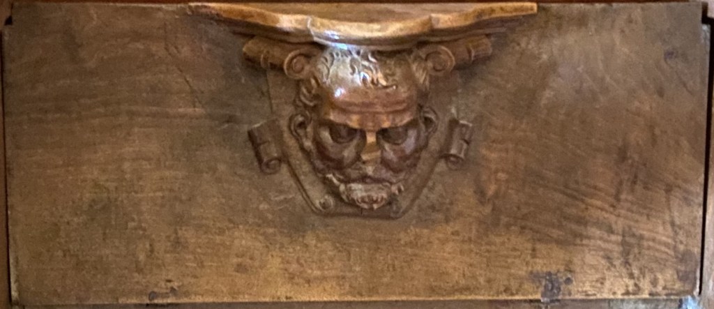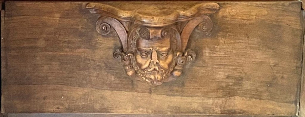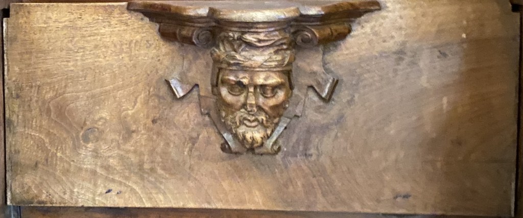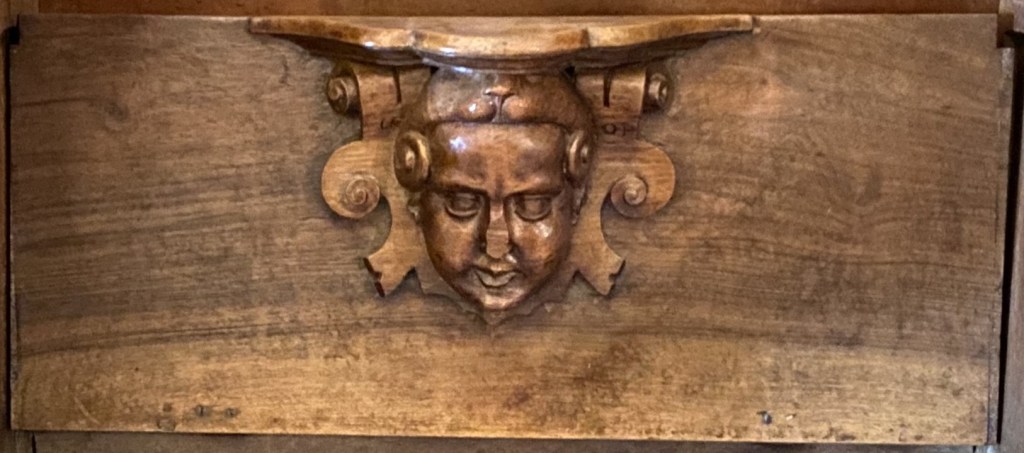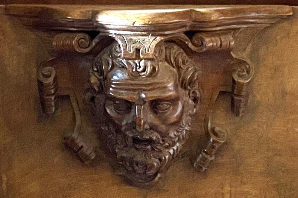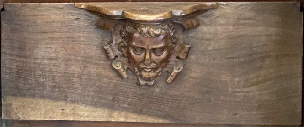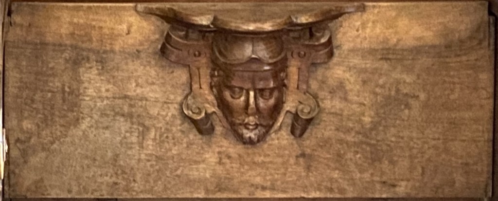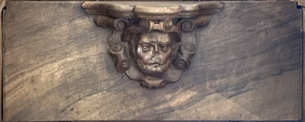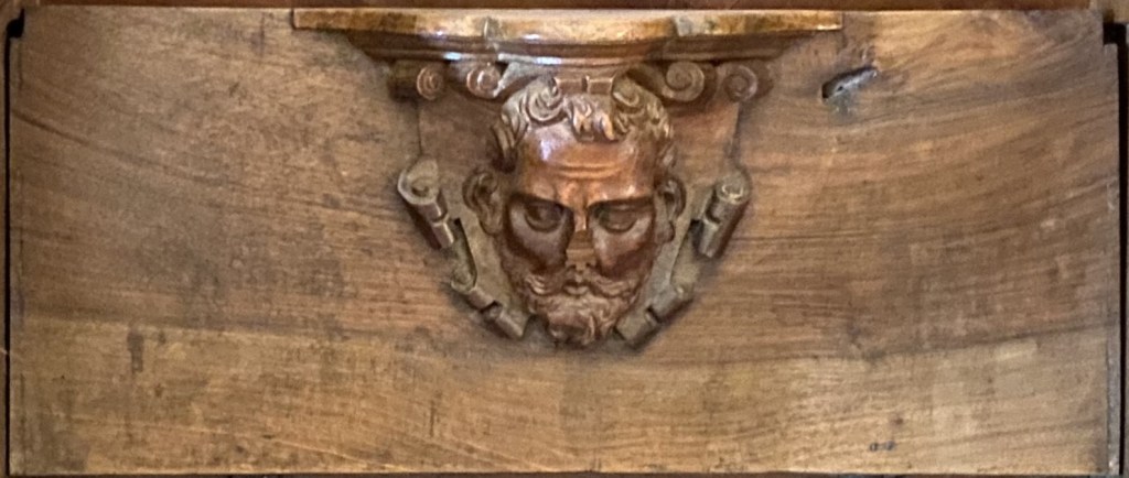 What of the others? S4 is missing which is a pity as it might have given us a clue as to what was appropriate under the seat of a VIP. It might not have been diplomatic to show the King’s face so close to monks’ bottoms but a number (noticeably E15 and E24) have a royal feeling to them. What about the architect Juan Bautista de Toledo? Like the King, contemporary depictions show him with the short beard that is also fashionable today and a common feature of the images.