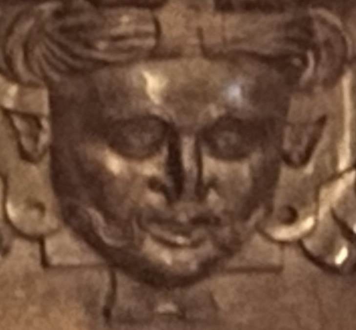 The carving has suffered damage to the nose.