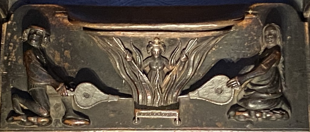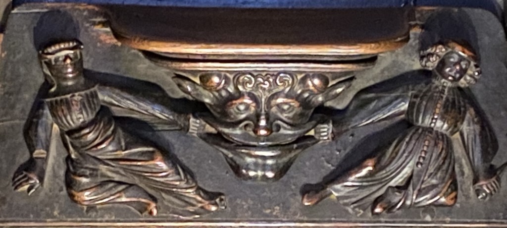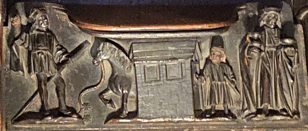 Might it be that the Dominicans commissioned misericords soon after they arrived between 1221 and 1269 from the local carpenter who was engaged in the construction of their church? His unfamiliarity with the established norms of misericords not far away is self-evident. The lack of conventionally-located supporters might support the idea that he worked from instruction of friars recently arrived from Europe where misericords don’t usually have supporters.