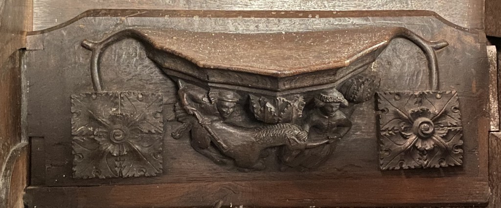 The later designs are both original and of high quality; the organic style is strikingly modern and they contrast with almost all the misericords to be seen elsewhere.