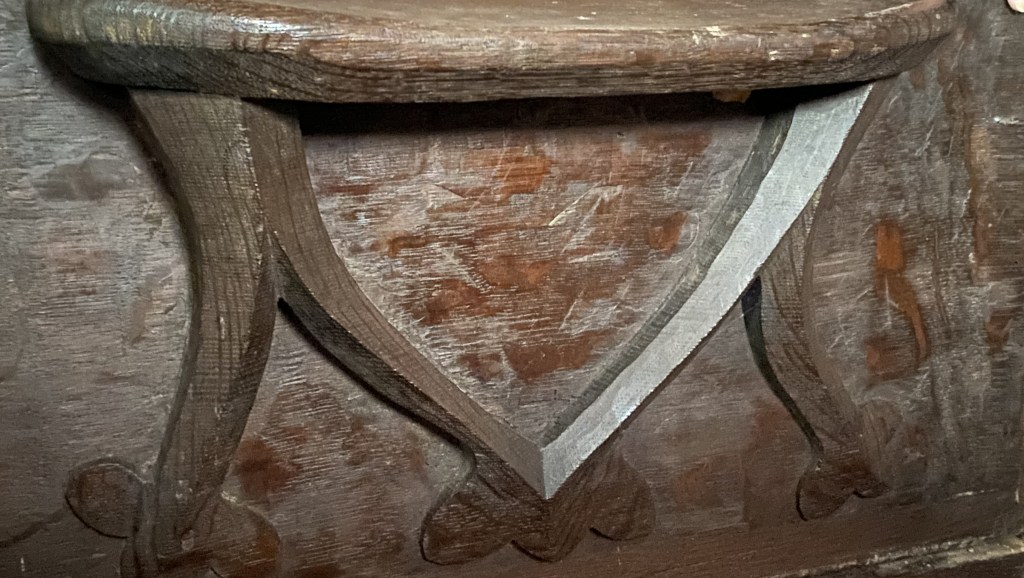This coat of arms in S4 (probably a later addition) is reflected in the stained glass of the church and similar to that of Thomas, Earl of Arundel K.C. (1585 to 1646)