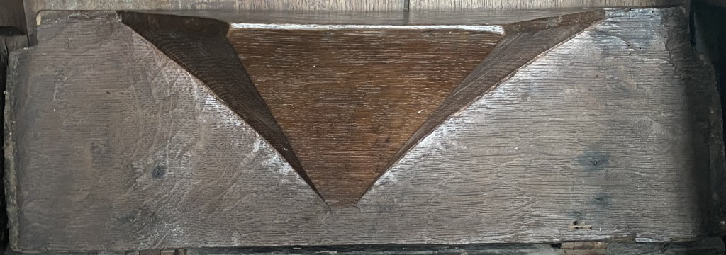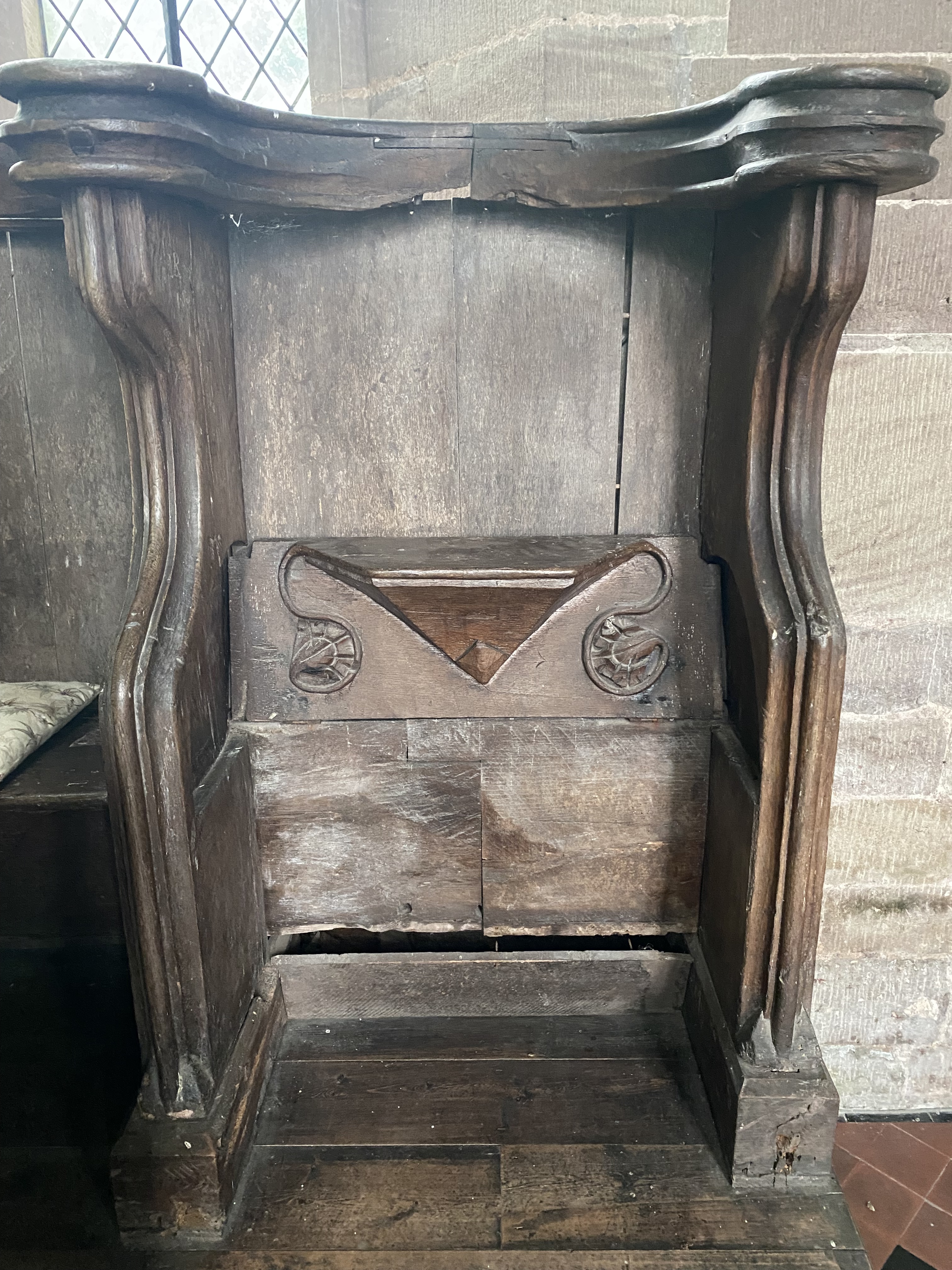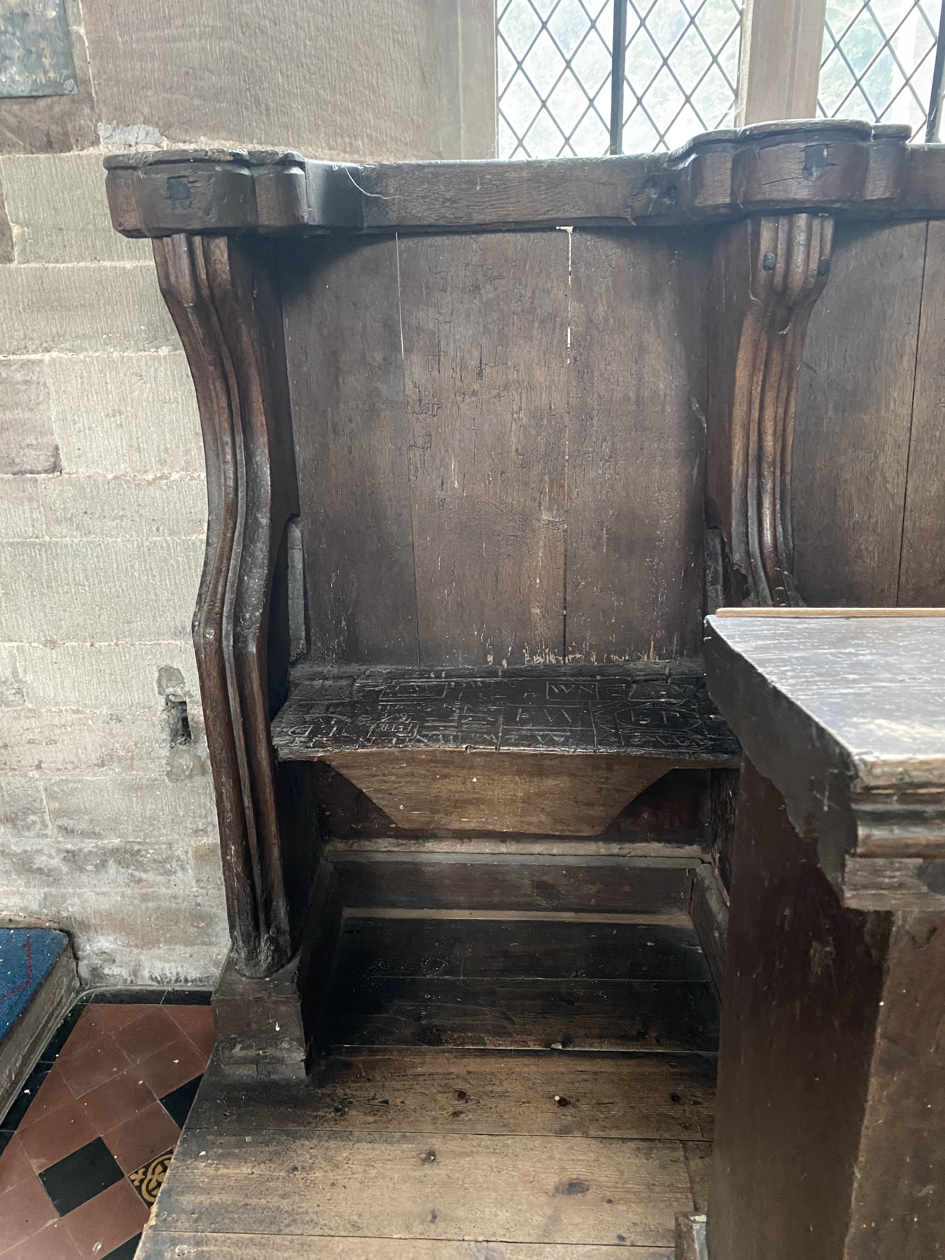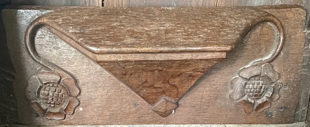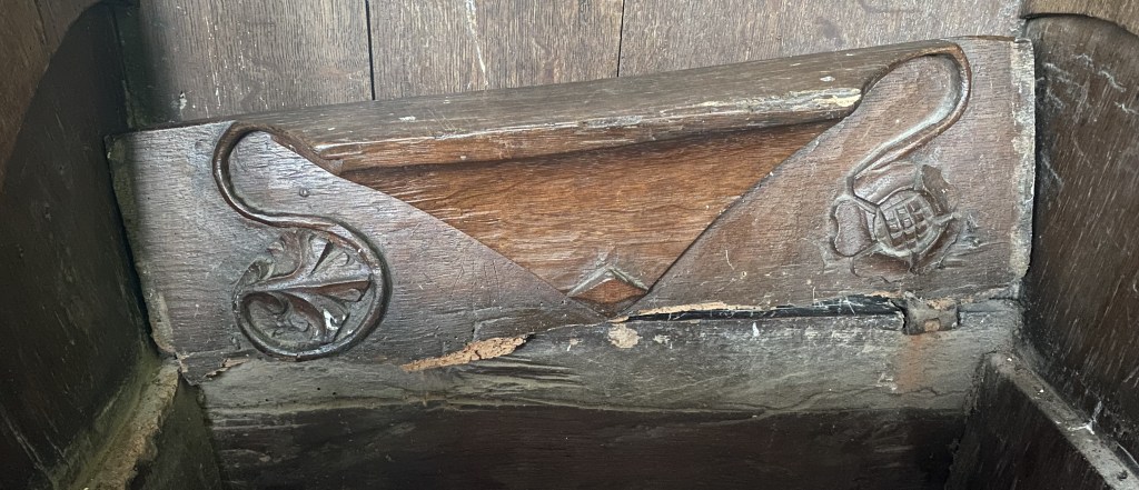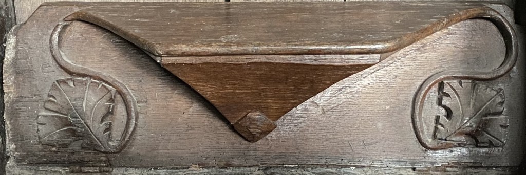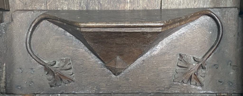 The church has twelve misericords, six on the north and six on the south of the chancel, which was under construction by 1318; a seventh chair on the back wall each side lacks such a feature.