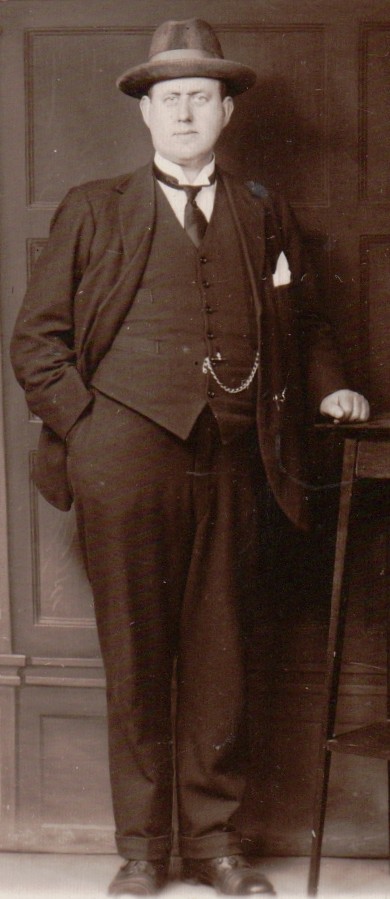 The father in this picture is wearing houndstooth pattern cloth, a fabric humble beginnings that remained relatively obscure until the 1930s. It caught the attention of the Prince of Wales and became more well-known. The Prince adopted the pattern into most of his casual wear, which transformed houndstooth from a rustic shepherd’s pattern into a fashion statement.