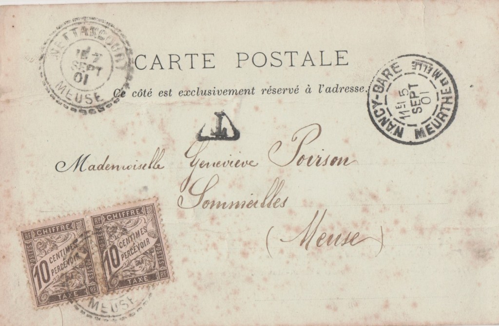 A card published by Portéhaut’s bookshop in Pithiviers has an Italian postage due stamp here.