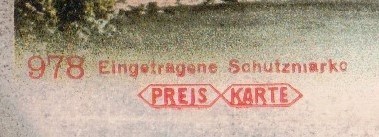 This company published numbered topographical coloured photocards of Switzerland, Germany, Spain and France into the divided-back era. The other wording indicates a registered trade mark (Eingetragene Schutzmarke).