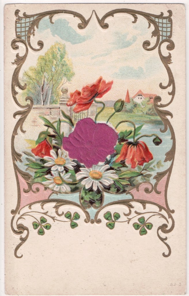 also published Twilight by H. W. Longfellow in a booklet covered in pansies. This could be the Siegel Cooper Department Store but they seem to be printers rather than retailers. Metropostcard says the initials relate to Sanford Card Co. but they were in Dansville, New York rather than Chicago.
